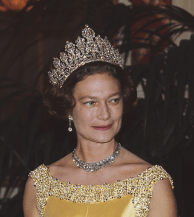One of the final appearances of the Emerald and Diamond Necklace Tiara on Queen Astrid was at a Gala Performance at the Royal Swedish Opera in Stockholm in May 1935, on the eve of the Wedding of Crown Prince Frederik of Denmark and Princess Ingrid of Sweden,  just a few months before Queen Astrid’s tragic death in a car crash.
