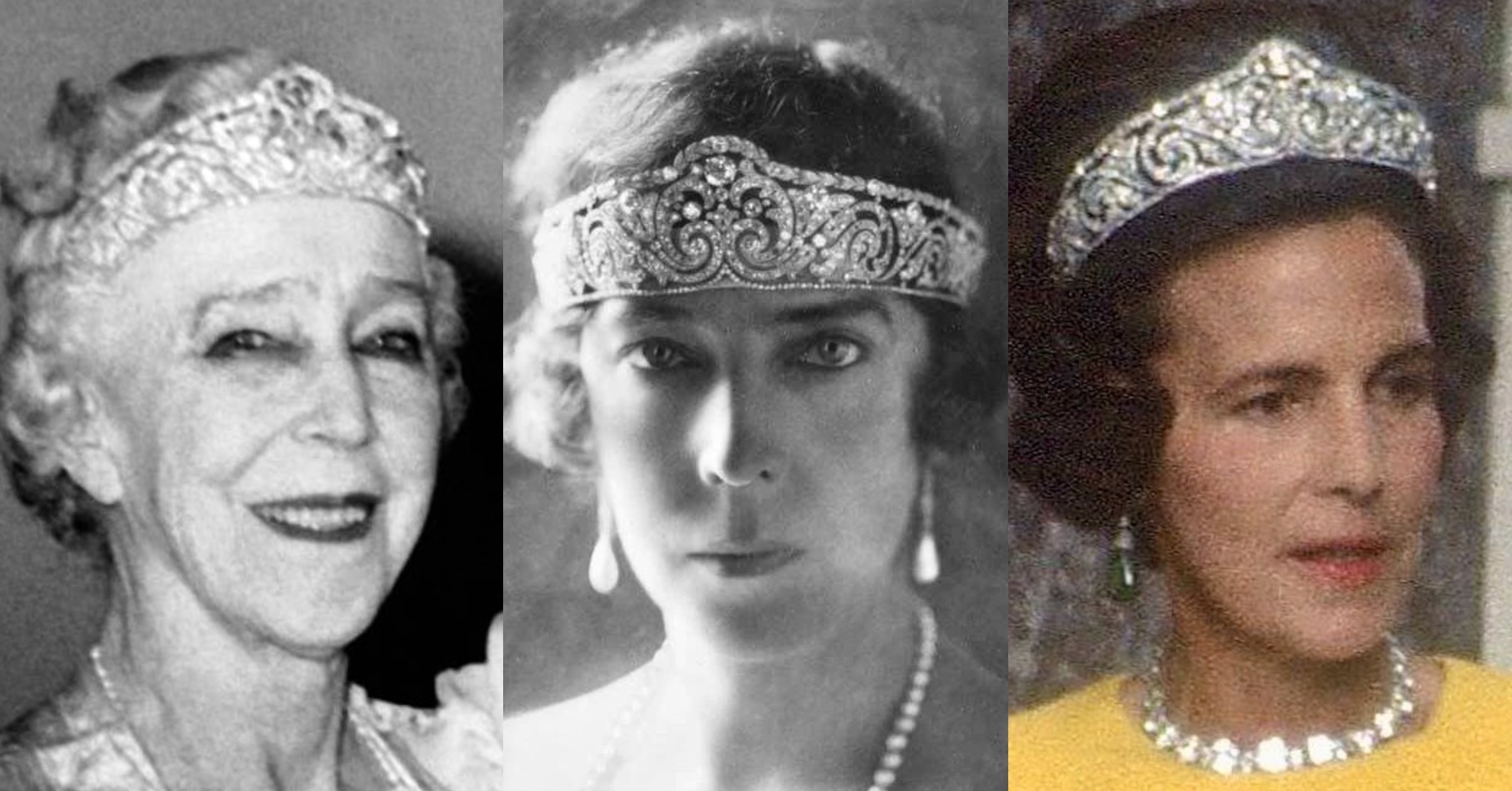 King Albert acquired the Cartier Tiara around 1912 and Queen Elisabeth first wore the Tiara for a series of portraits in the 1910s, attaching it atop a fabric turban.