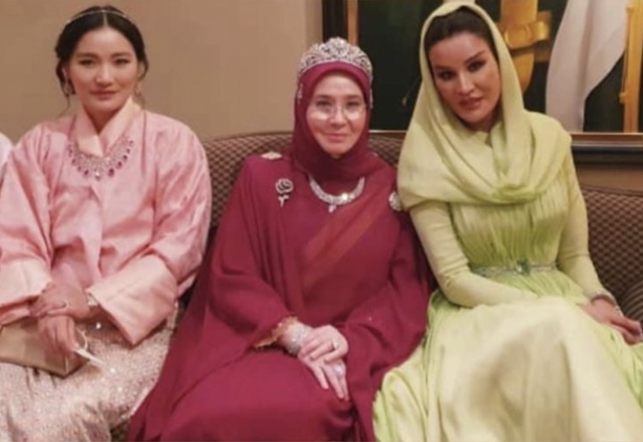 Just a few weeks later, Queen Jetsun Pema wore a delicate row of diamonds in her hair for the Wedding Banquet of Crown Prince Hussein of Jordan in 2023.