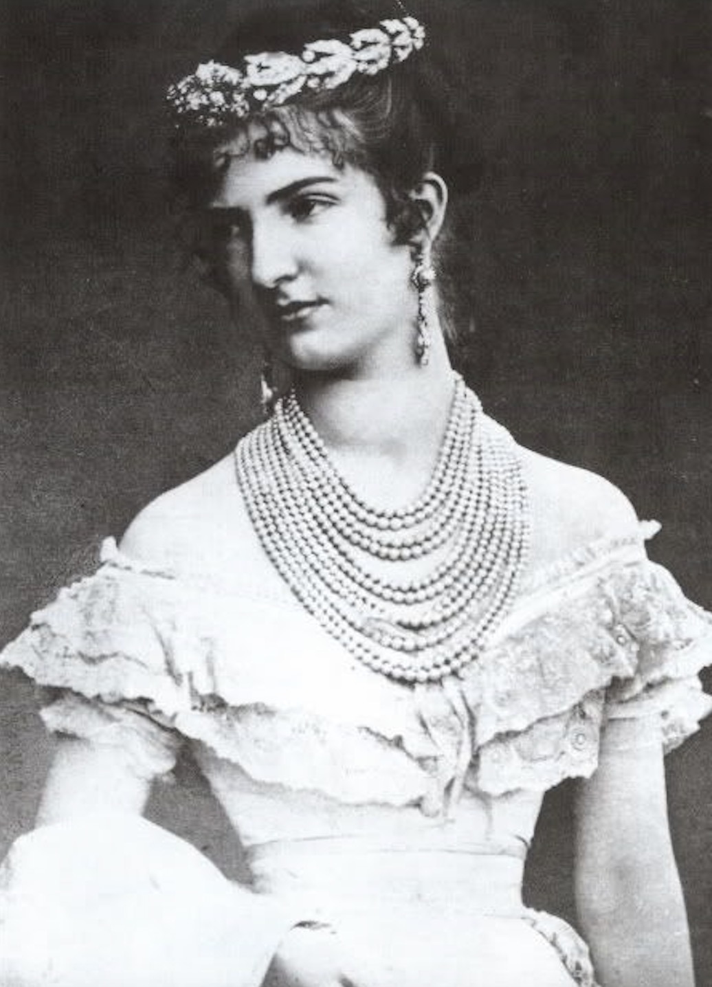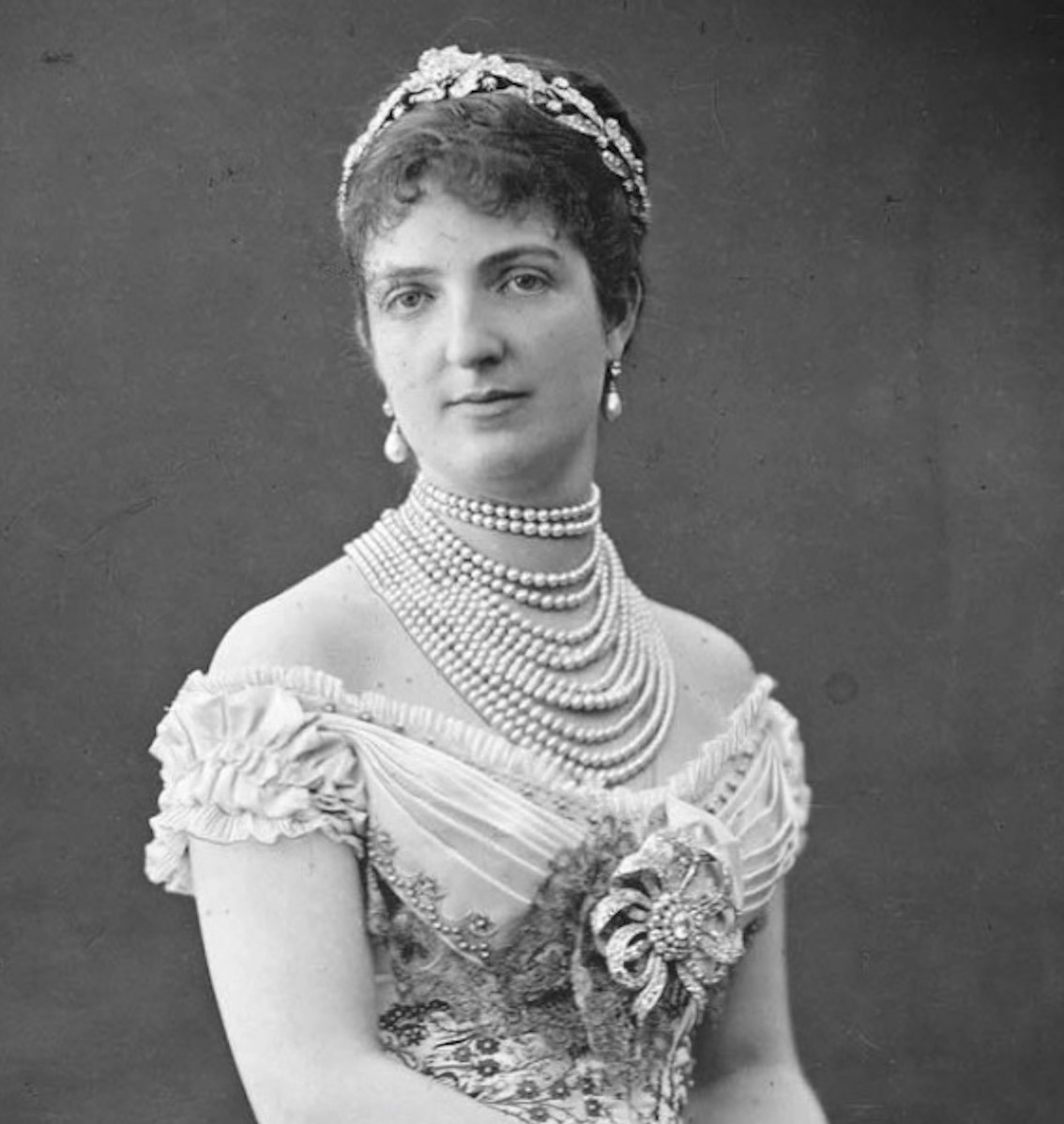 Queen Margherita was photographed and depicted wearing the Mellerio Diamond Wreath Tiara with ropes of pearls and her Pink Diamond Stomacher in numerous portraits, paintings, and State Occasions, sometimes with a smaller Diamond Floral Tiara atop the Mellerio Wreath.