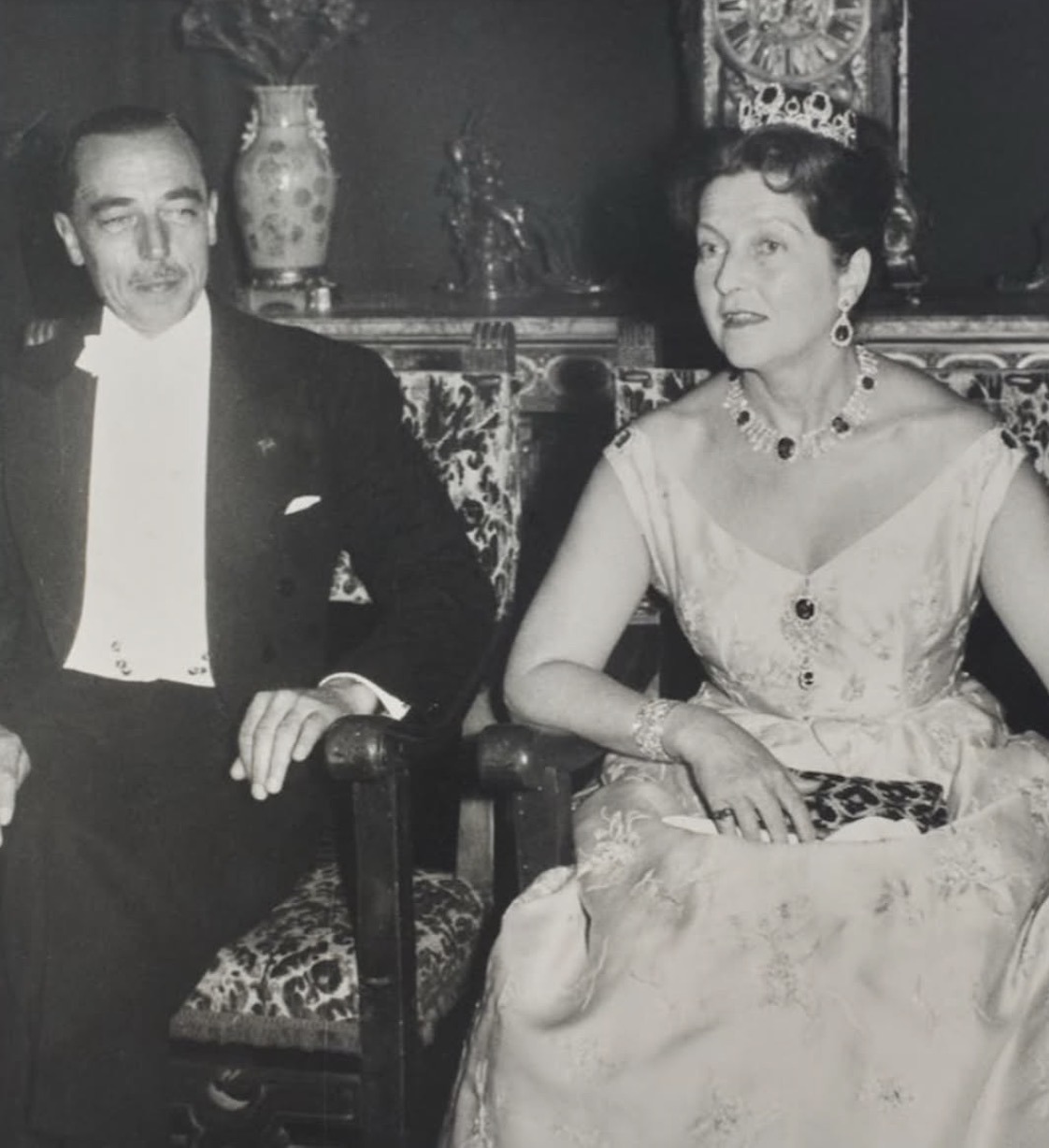 Queen Marie-Amélie’s Pearl and Sapphire Parure also belonged to the Count and Countess, but was not as frequently worn, an exception being the Wedding Gala of Prince Alexander of Yugoslavia and Princess Maria Pia of Savoy in 1955.