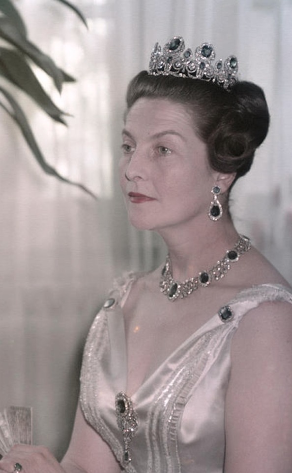 In 1957, the Countess gave the Pearl and Sapphire Parure to Duchess Marie-Thérèse of Württemberg when she married her eldest son and heir, Prince Henri, Count of Clermont, and that was also worn at the Wedding Ball of her brother, Duke Carl of Württemberg, to her sister-in-law, Princess Diane of Orléans, in 1960.