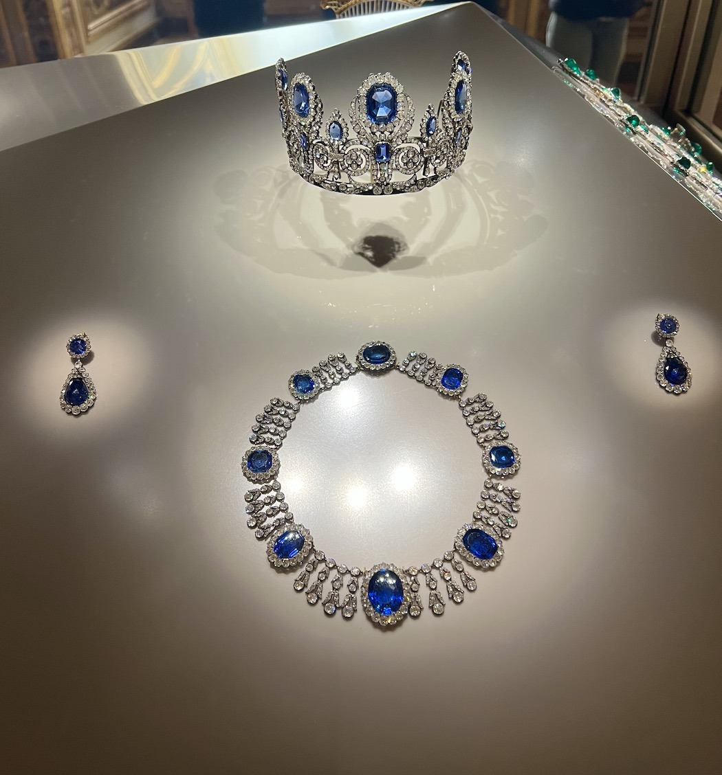 The Sapphire Parure had been put on display at the newly refurbished Galerie d’Apollon in the Louvre, where I had the pleasure of seeing in 2020, right before the Coronavirus crisis, and most recently in February this year.