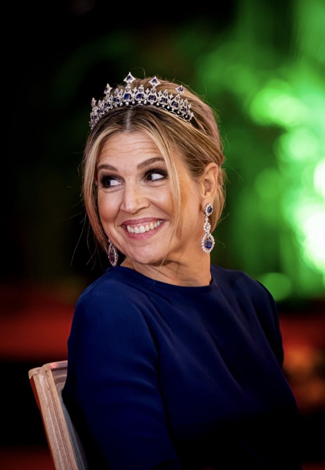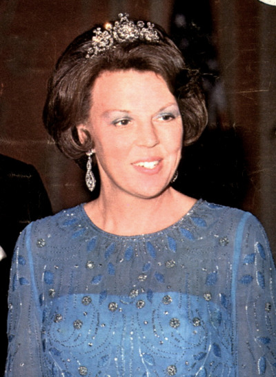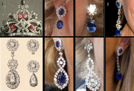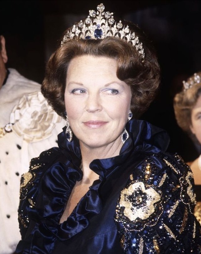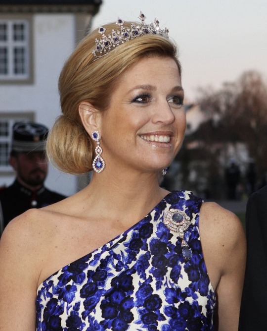 Princess Beatrix received a pair of large ‘figure 8’ Diamond Earrings and a pair of quite massive Sapphire and Diamond Earrings, which are now frequently worn by Queen Máxima.