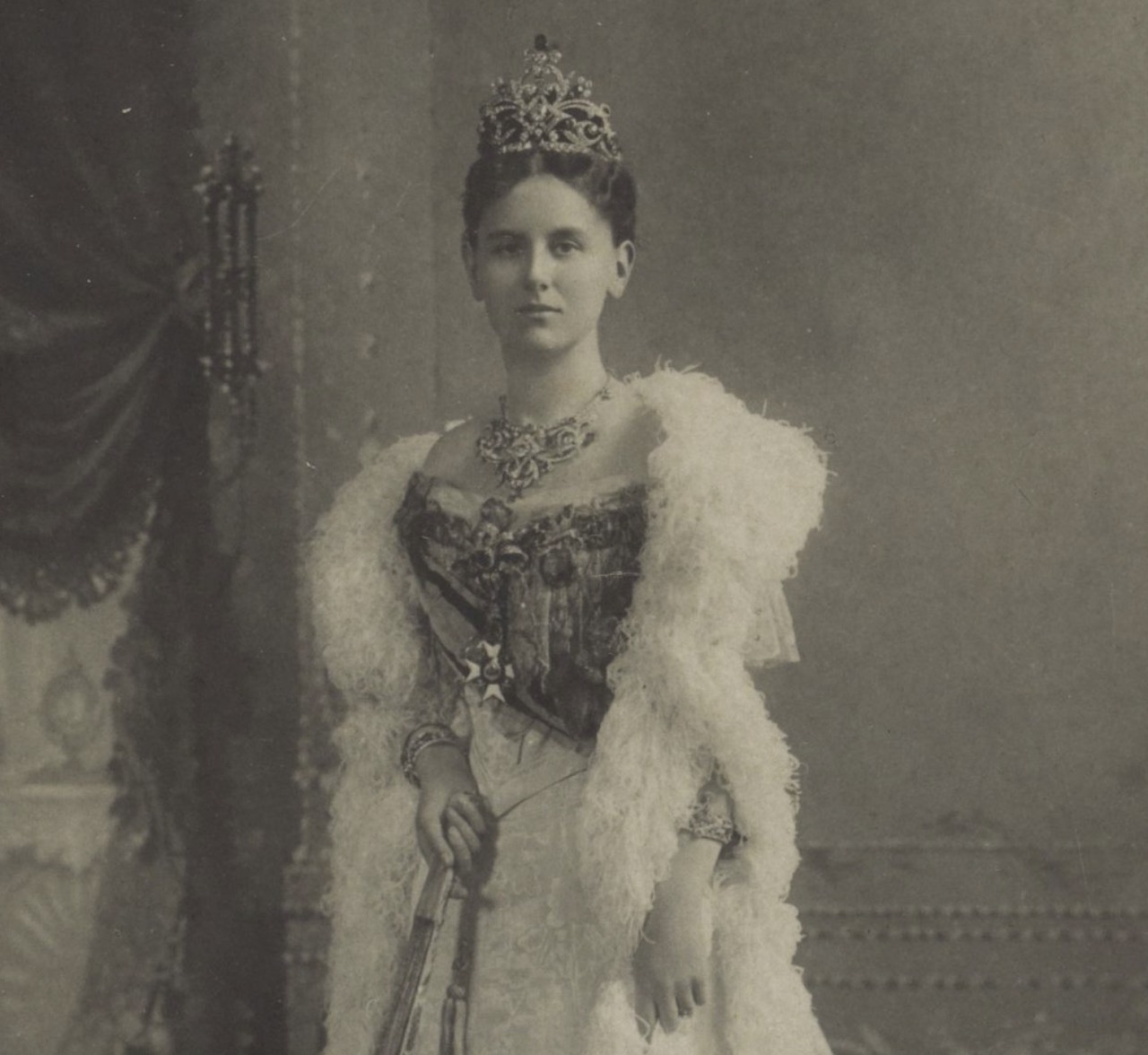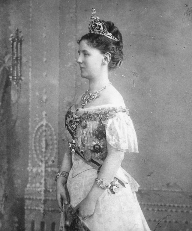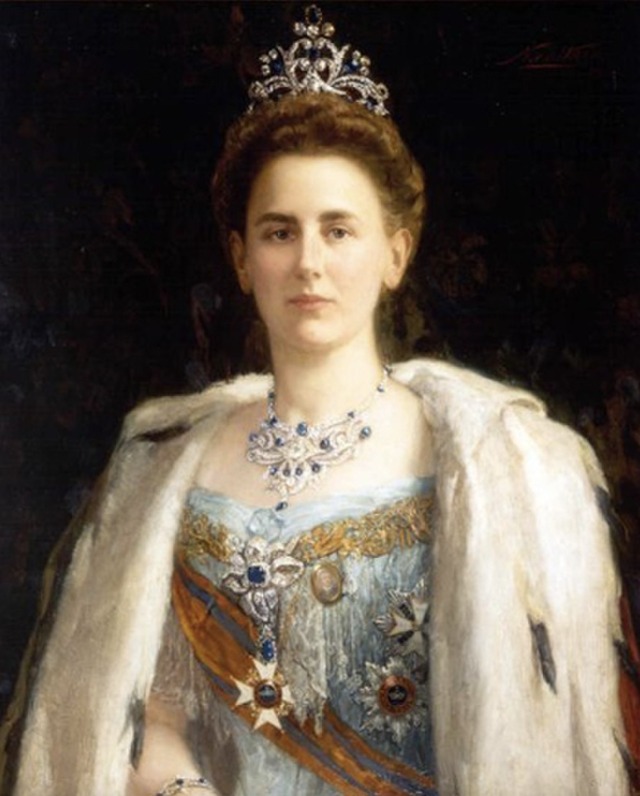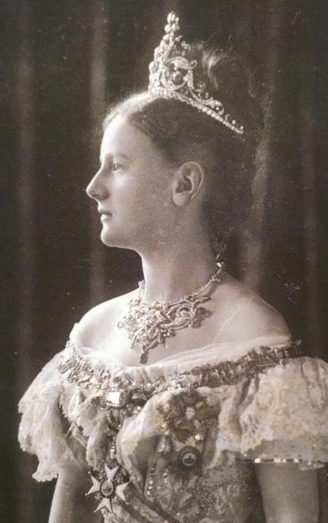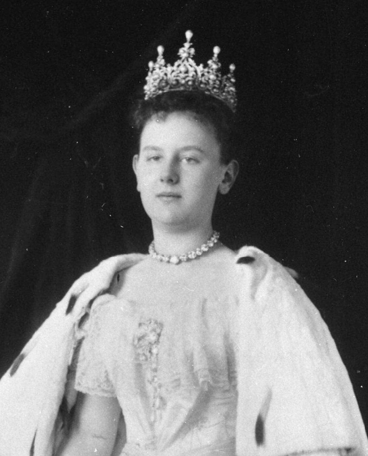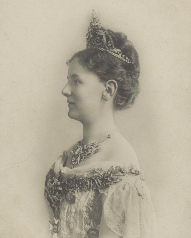 Queen Wilhelmina wore the full Sapphire and Diamond Tiara and Parure for a series of portraits taken by Wegner & Mottu in 1903, on the fifth Anniversary of her taking full powers upon the end of her Regency.