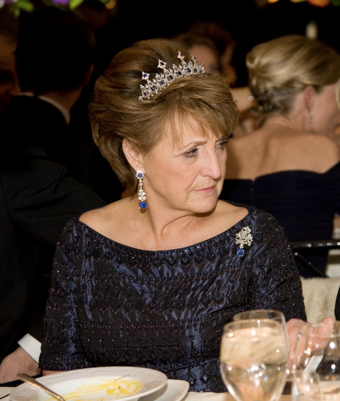 Princess Margriet received a pair of Sapphire and Diamond Earrings, a pair of Diamond Earrings, and a Sapphire and Diamond Brooch of the jewels created from Queen Wilhelmina’s Sapphire Tiara.