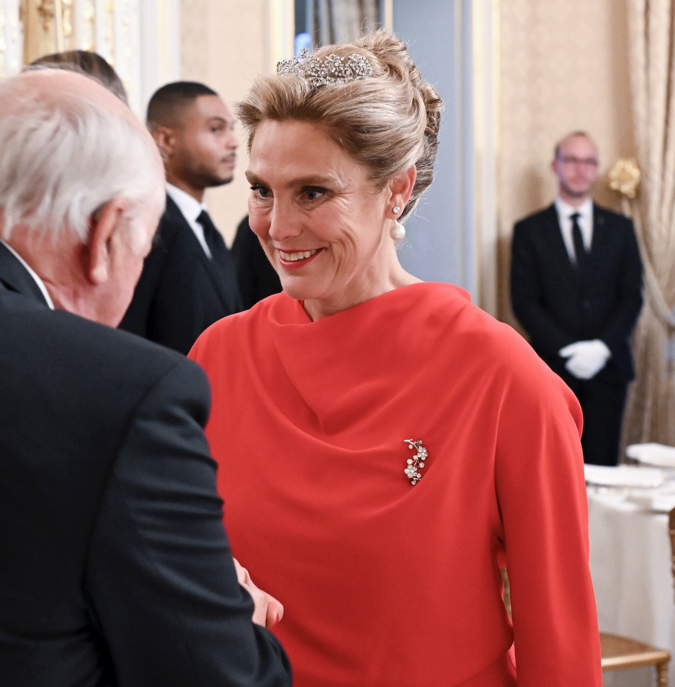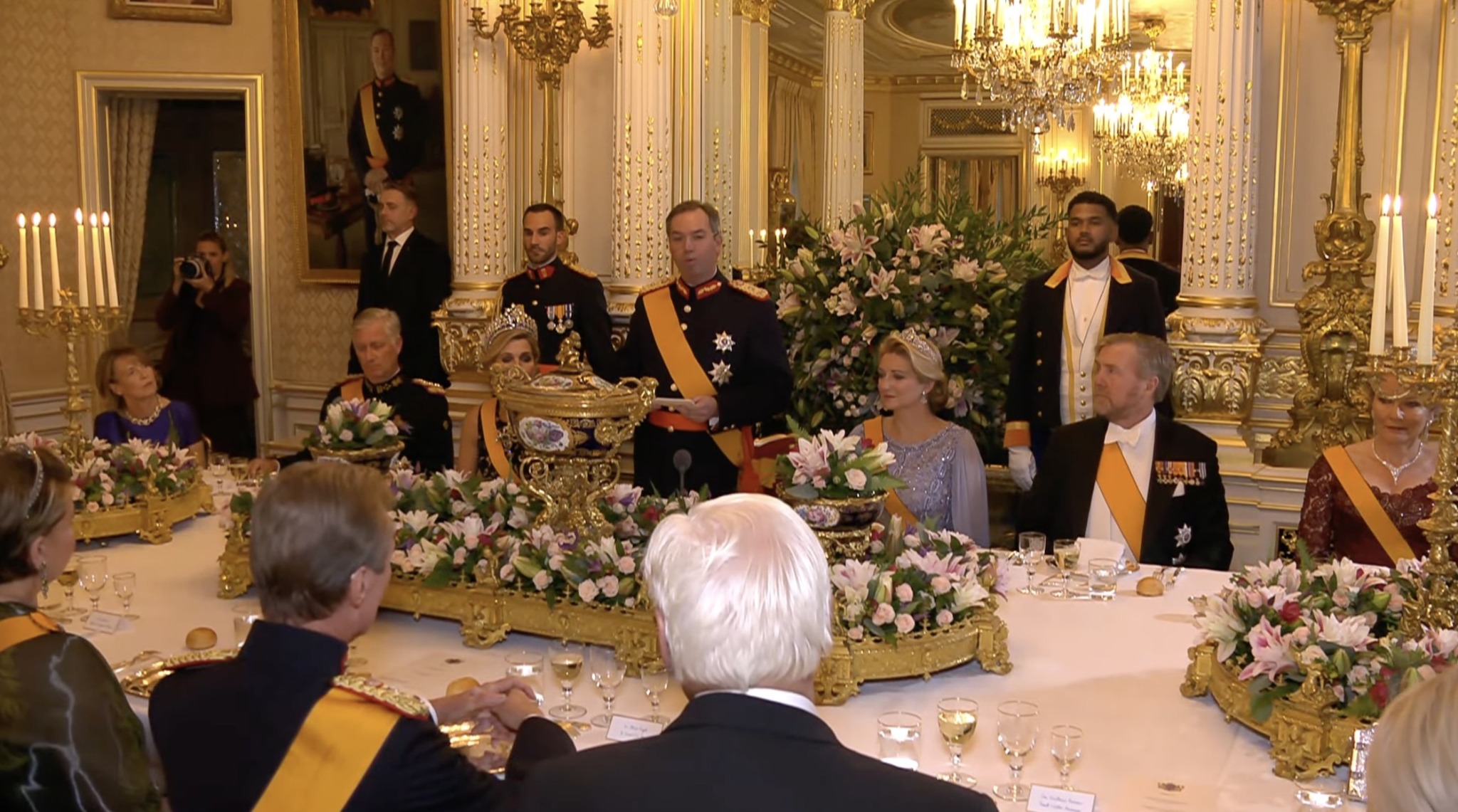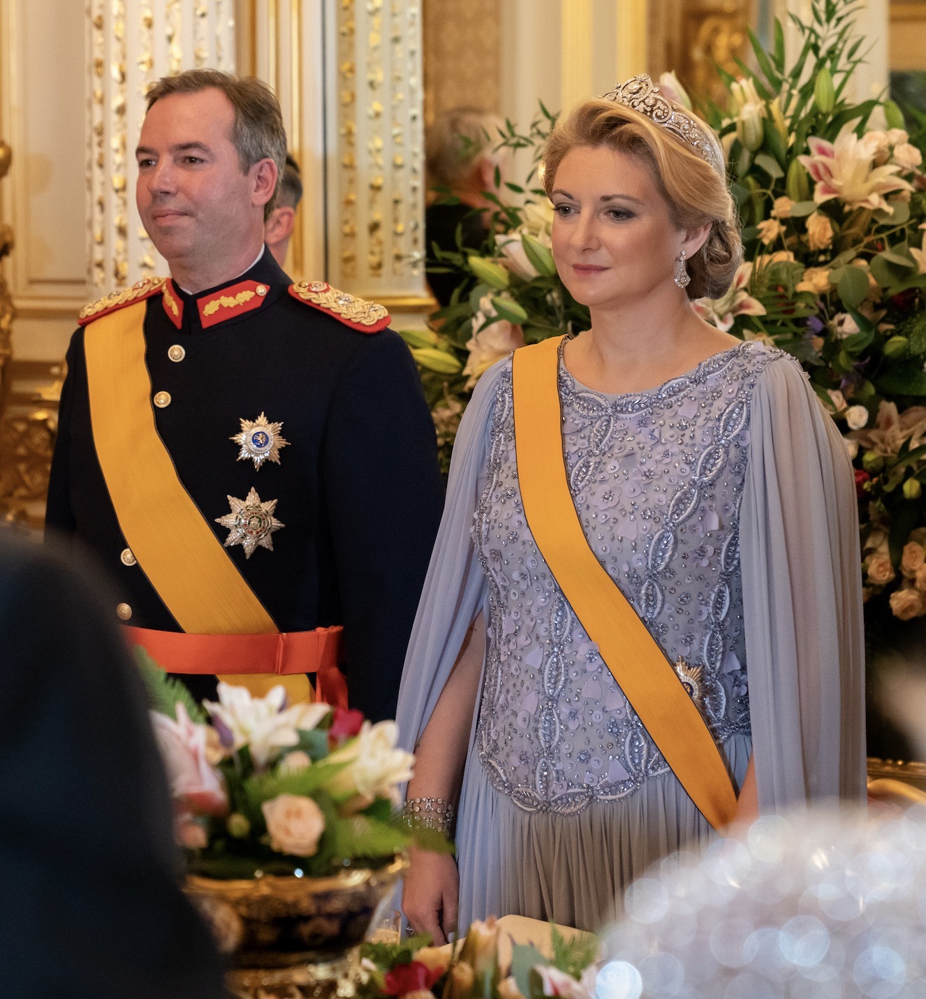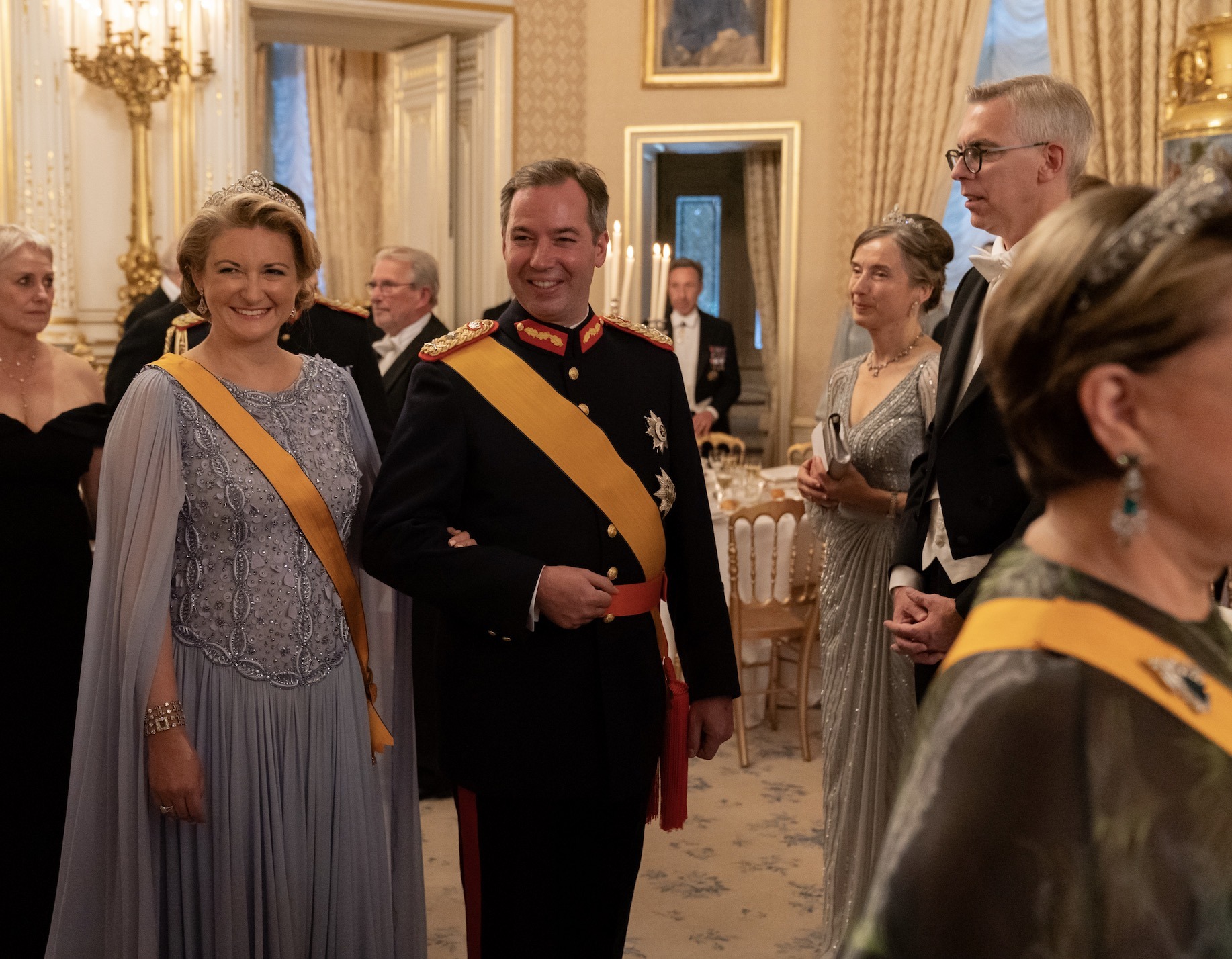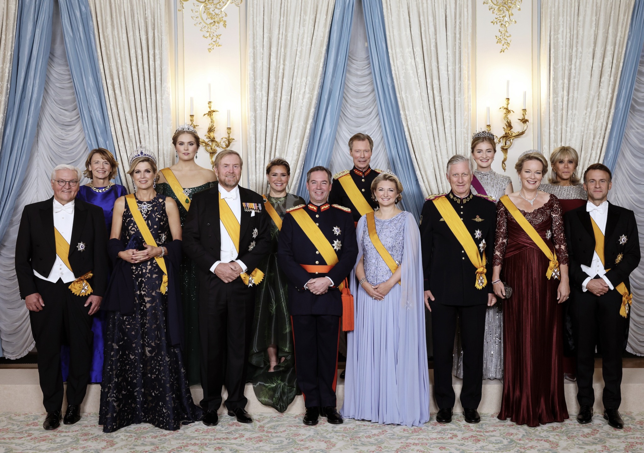 The new Grand Duke Guillaume V and Grand Duchess Stephanie of Luxembourg held a Gala Dinner for the Dutch and Belgian Royal Families as well as the Presidents and First Ladies of Germany and France at the Palais Grand-Ducal.