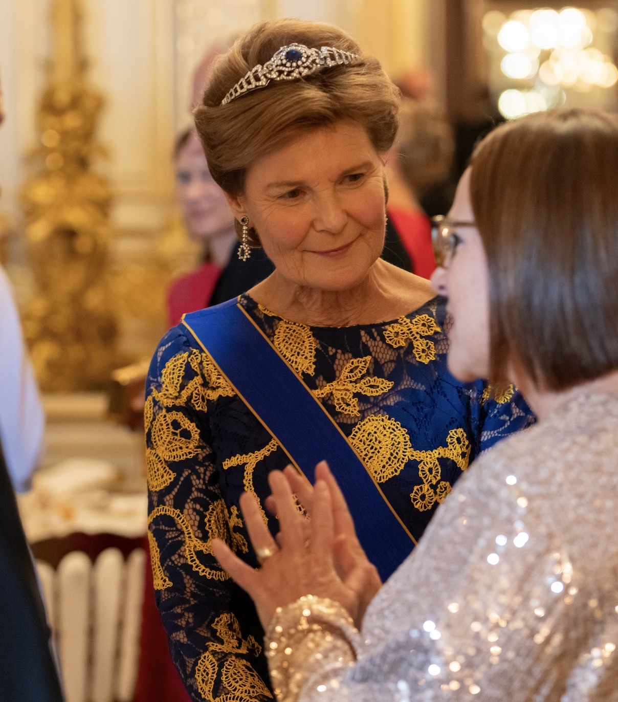 Princess Margaretha of Luxembourg and Liechtenstein wore her Sapphire Bracelet Tiara with Sapphire Earrings and the Order of Adolphe of Nassau.