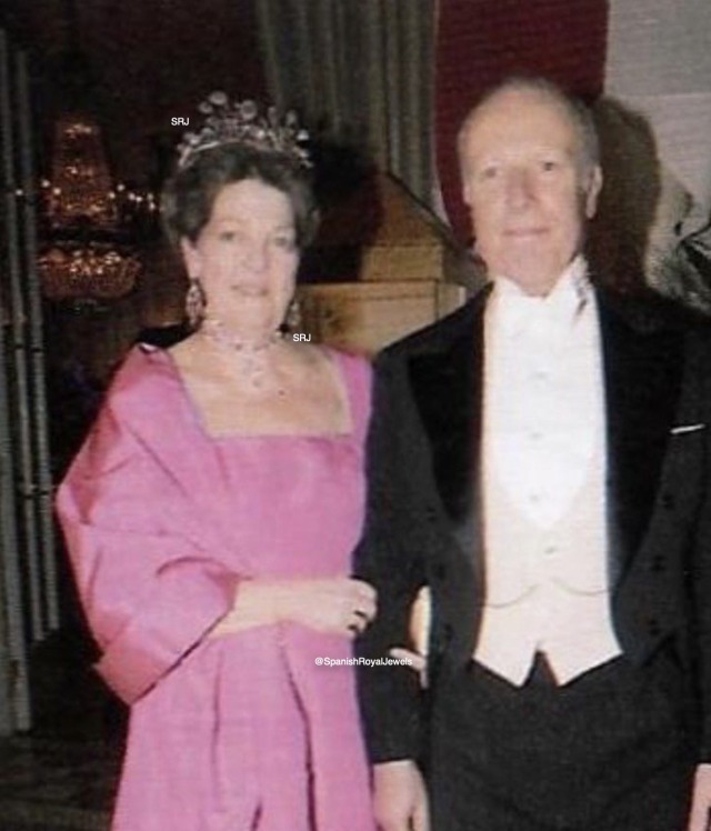 During her single years, like all her sisters, Princess Chantal regularly borrowed tiaras from her mother, the Countess of Paris, whenever the occasion required. Among the Orléans collection, she is known to have worn the Diamond Comb at a young age, even before turning eighteen, and she also wore the Art Deco Diamond Bandeau on several occasions.