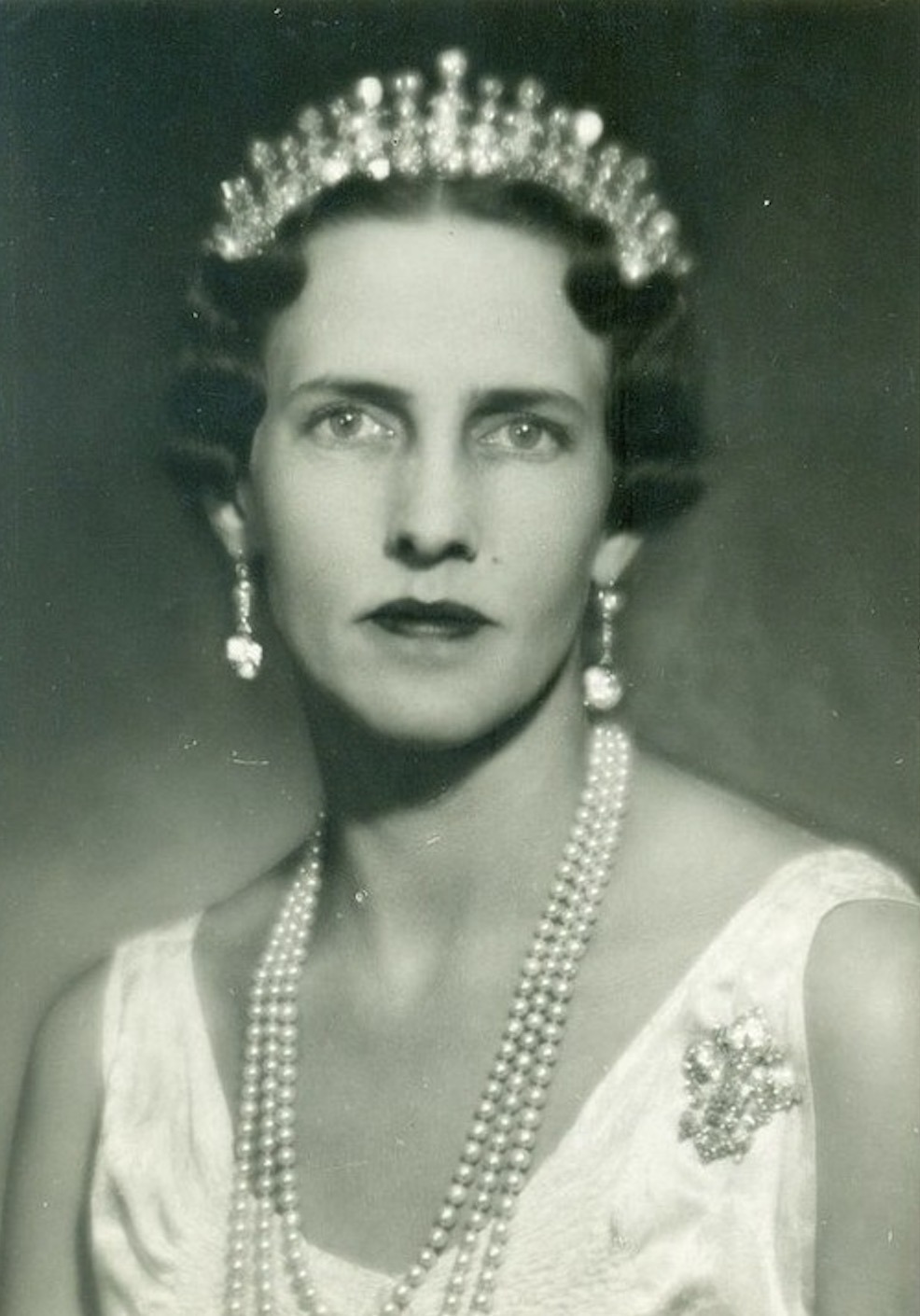 [Diamond Tiara | Empress Frederick’s Pearl Earrings | Diamond Giglio Brooch]
