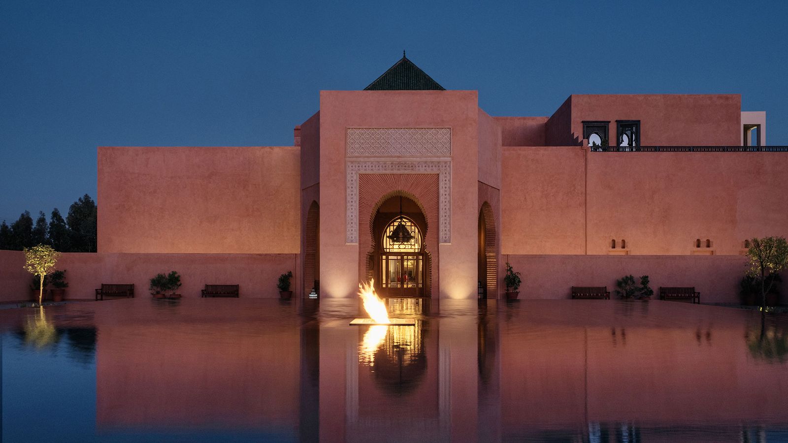 It’s undeniably a very romantic destination. Indeed, The Oberoi has become one of the most highly sought after wedding venues in Marrakech, due to its spectacular location, incredible space, amenities and the impeccable service and luxury Oberoi is known for worldwide. There’s even an in-house team of wedding planners to help with every detail and the option to ‘buy-out’ the entire property for your special occasion. The tranquility of the location – nestled amidst 28 acres of lush gardens, fragrant citrus orchards and centuries-old olive groves – makes staying there feel intimate, despite the very grand, impressive architecture and 84 rooms and suites. And I really do mean grand. The resort, which used to be an olive farm and still has over 2,500 olive trees, opened in 2019, took 10 years to build and comprises some stunning architectural features such as the vast inner sanctum marble courtyard. The entrance to the hotel features a grand black basin that at night has giant flames floating in the water – it really does make a magnificent and dramatic atmosphere. The Oberoi is also a lovely getaway for friends and families as well and would make a perfect girls weekend away or if you’re traveling with little ones, there is a fantastic creche service on offer.