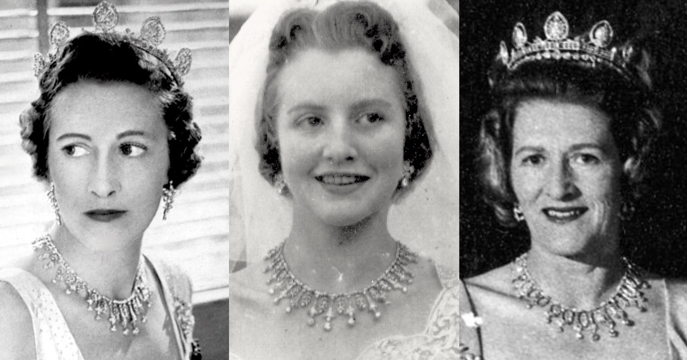 When Lady Anne Coke married the future Baron Glenconner in 1956, she wore the historic Coke Necklace paired with a pair of striking Antique Diamond Earrings, which were likely among her Wedding Gifts.