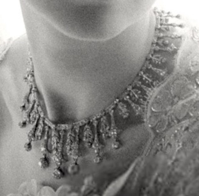 Glenconner Tiara | Coke Diamond Necklace | Diamond Bow Brooch | Diamond Earrings | Leicester Tiara