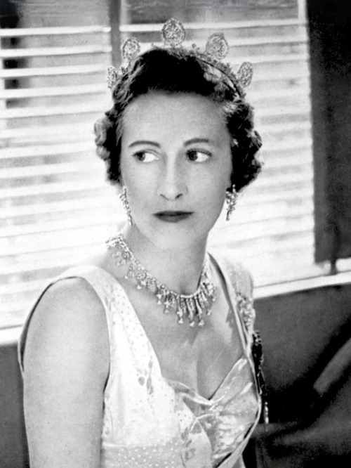 The Countess of Leicester also wore the Chaumet Tiara and the Coke Necklace at numerous family occasions, like the Coming Out Ball of her younger daughter, Lady Sarah, in 1962.
