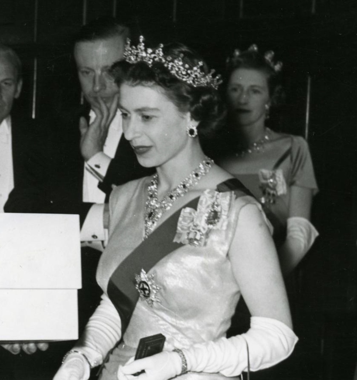 As a Lady-in-Waiting, the Countess of Leicester joined the Queen for Gala Performances and Banquets, like for the Portuguese State Visit in 1955, and also joined the Queen on State Visits abroad, like the State Visit to Germany in 1965, which included many occasions to wear the historic Coke Necklace with the Leicester Tiara.