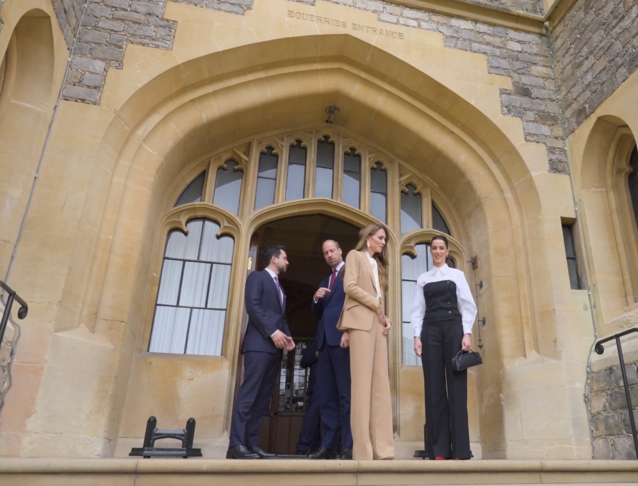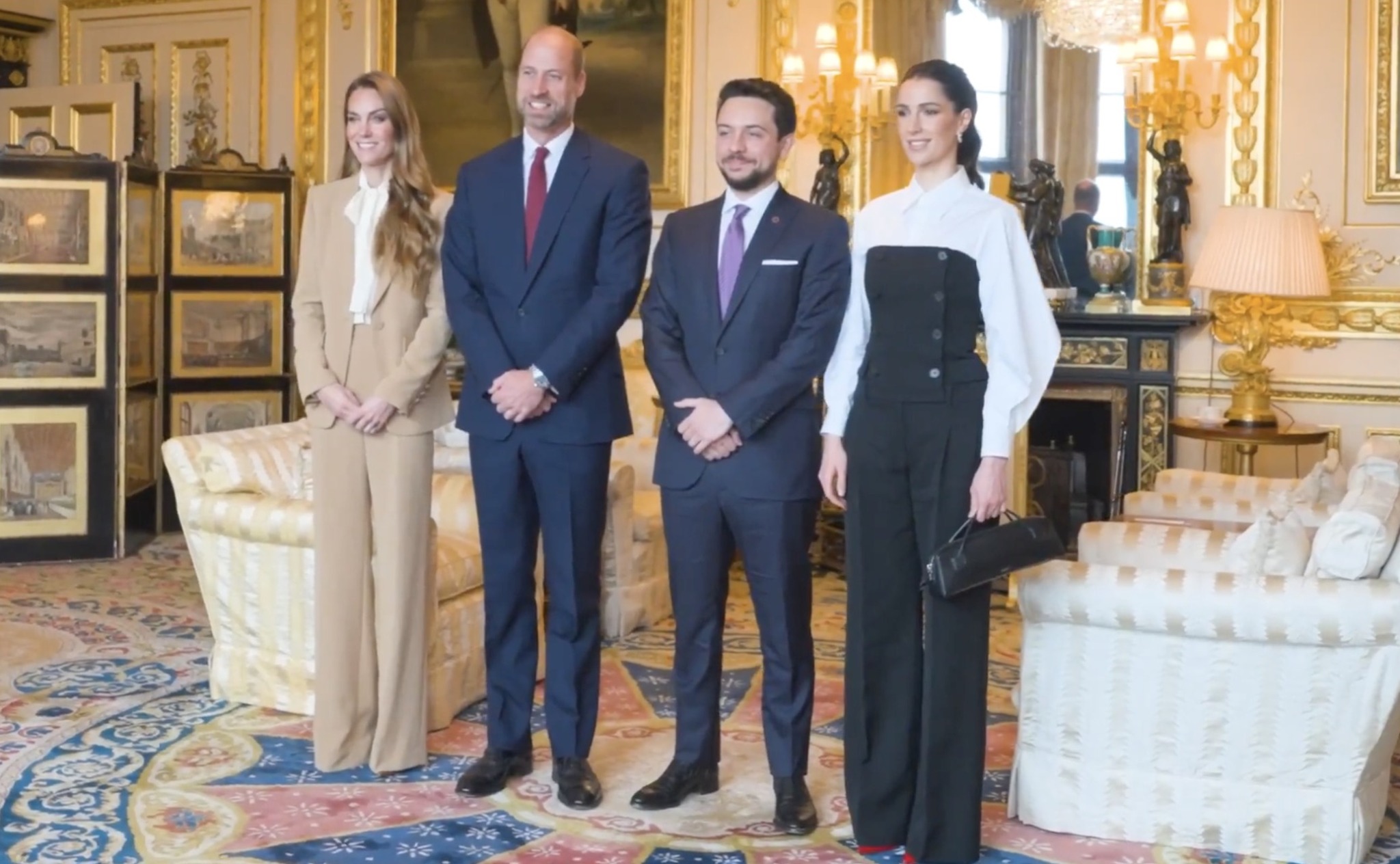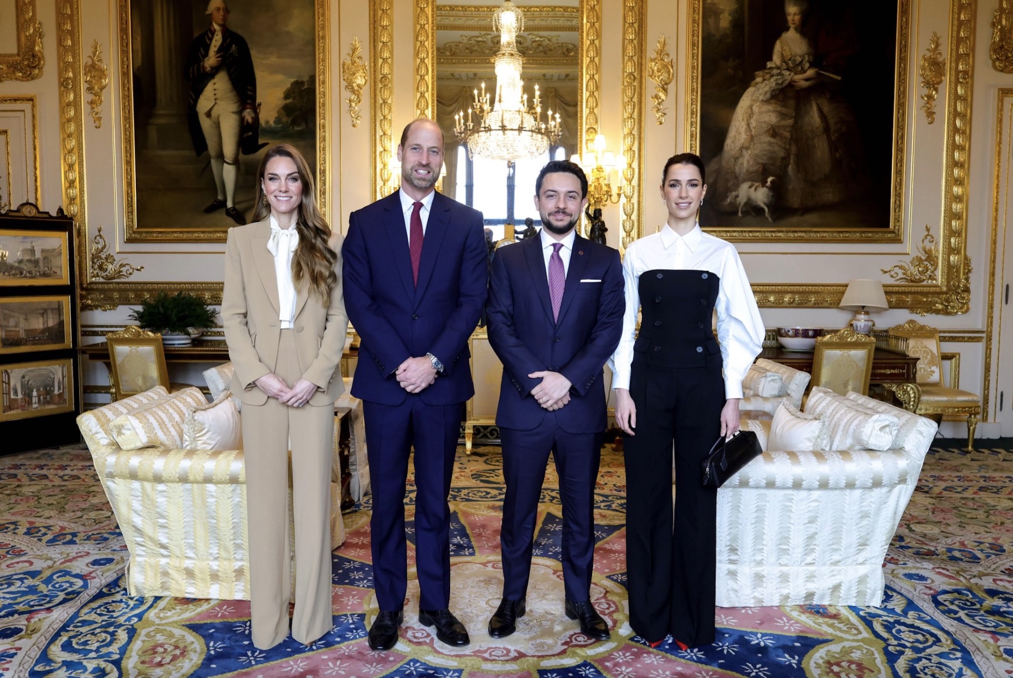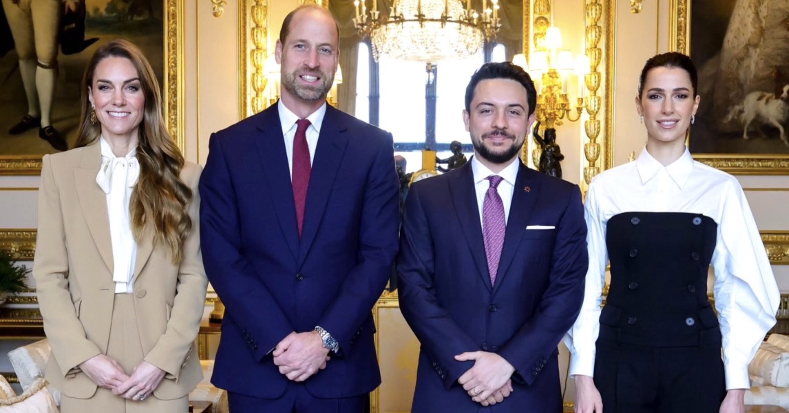 The Prince and Princess of Wales received Crown Prince Hussein and Princess Rajwa al-Hussein of Jordan in a Drawing Room at Windsor Castle, during an official visit to the United Kingdom.