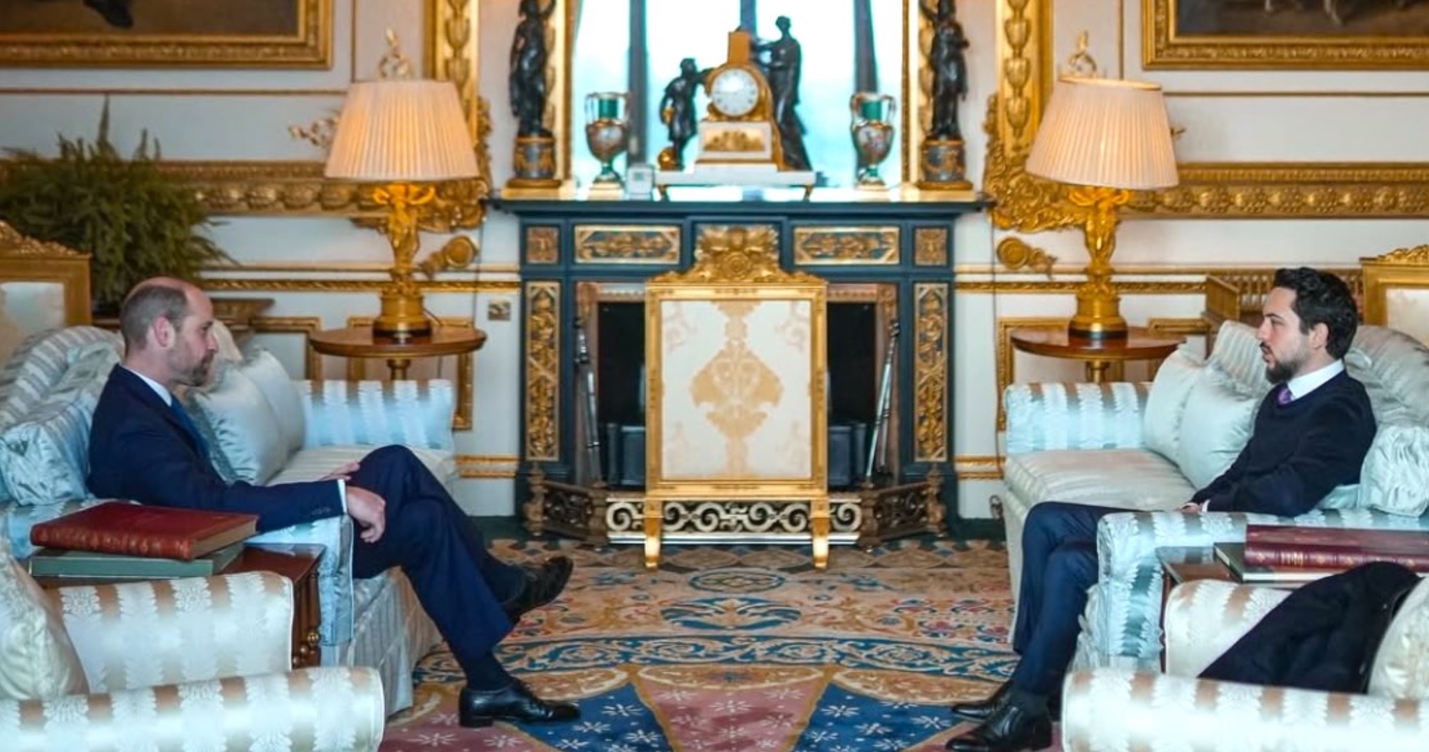The Prince of Wales received Crown Prince Hussein of Jordan in a Drawing Room at Windsor Castle in January, which a couple of images released by the Crown Prince, who wrote: