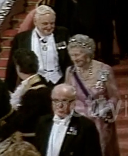 The Dowager Duchess of Abercorn continued to wear the Diamond Star Tiara for State Banquets into the final years of her life, with another notable appearance at the Malawi State Banquet at Windsor Castle in 1985.
