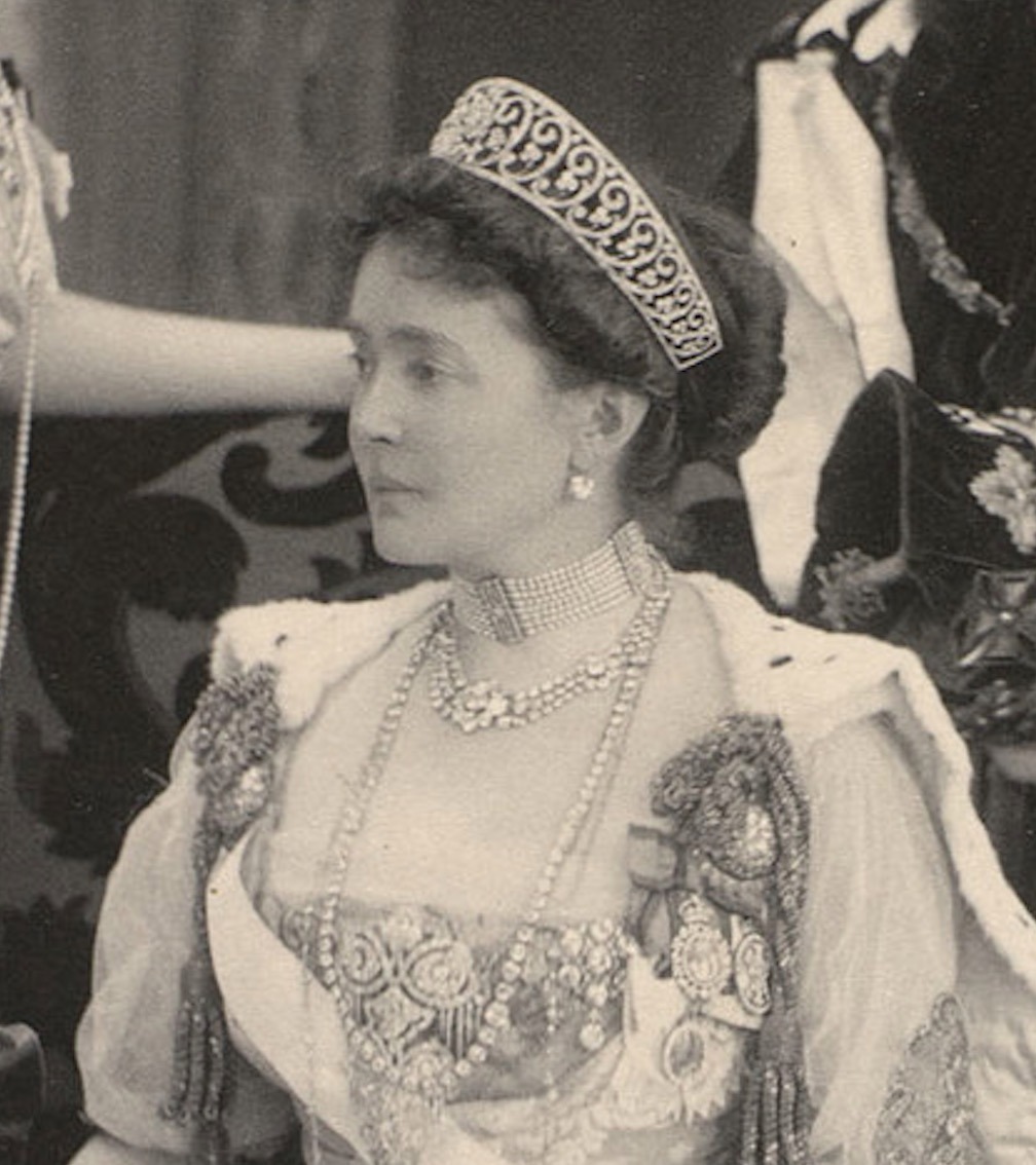 The Diamond Bow Brooch was first pictured on the Duchess of Connaught, a daughter-in-law of Queen Victoria born Princess Louise Margaret of Prussia, who notably wore the piece with her Fringe Tiara in a series of portraits around 1907.