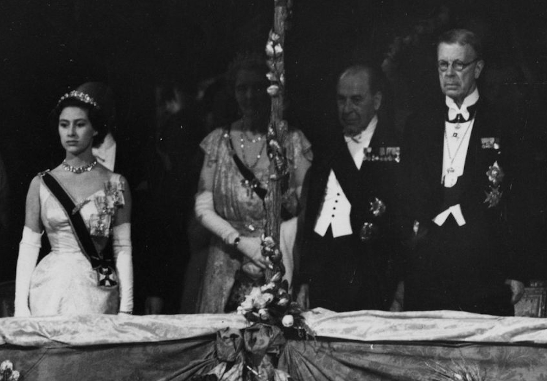 After a possible appearance at the Wedding of Queen Elizabeth II and Prince Philip of Greece and Denmark, Lady Patricia wore the Connaught Bow Brooch with her Diamond Tiara for the Swedish State Visit to Britain in 1954.
