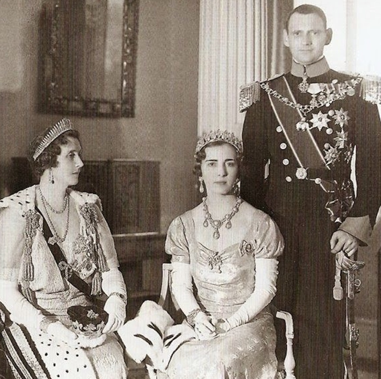 After the Duchess’ death in 1917, the brooch was inherited by her youngest daughter, Princess Patricia, who was styled as Lady Patricia after her wedding, notably wore the Connaught Bow Brooch with her Diamond Tiara at the wedding ball of her niece, Princess Ingrid of Sweden, and Crown Prince Frederik of Denmark in 1935.