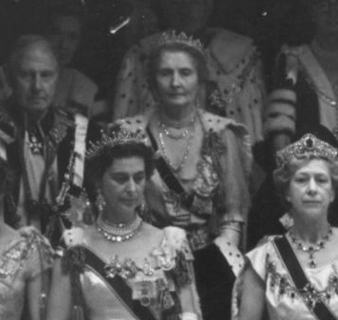 Lady Patricia also wore the Diamond Bow Brooch for the Coronation of Queen Elizabeth II at Westminster Abbey in 1953, paired with her Diamond Tiara.