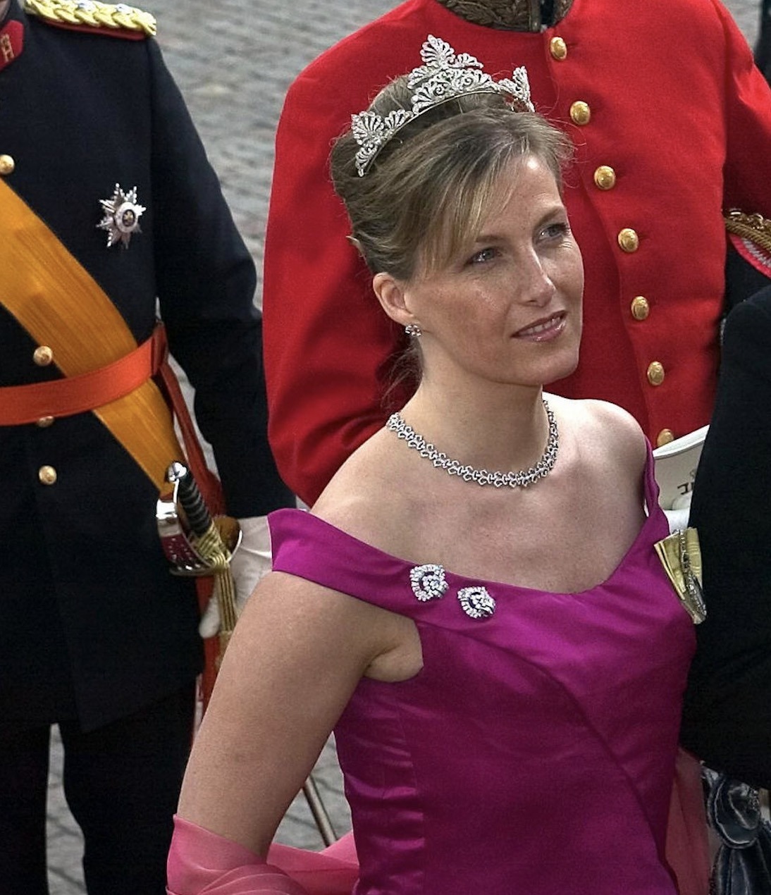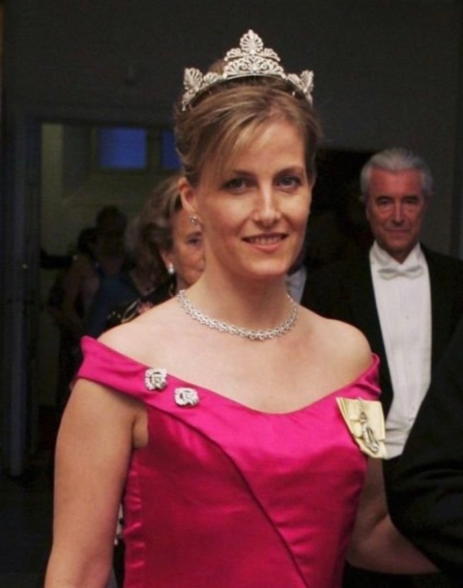 The Queen Mother’s Art Deco Diamond Clips were worn by the Countess of Wessex for several gala events, among them the Wedding of Crown Prince Frederik of Denmark in Copenhagen in 2004 as well as the Enthronement Dinner of Prince Albert II of Monaco in 2005, in addition to Royal Ascot.