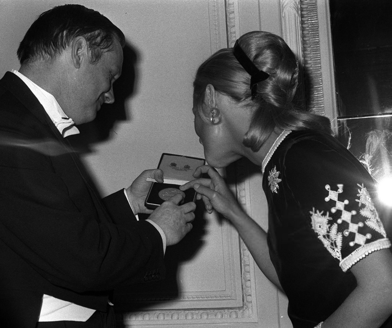 Princess Marina first wore the modern Diamond Flower Brooch to celebrate Greek Independence Day at Claridges Hotel the following month, and also when she presented the Wimbledon Trophies that summer as well as the next year.