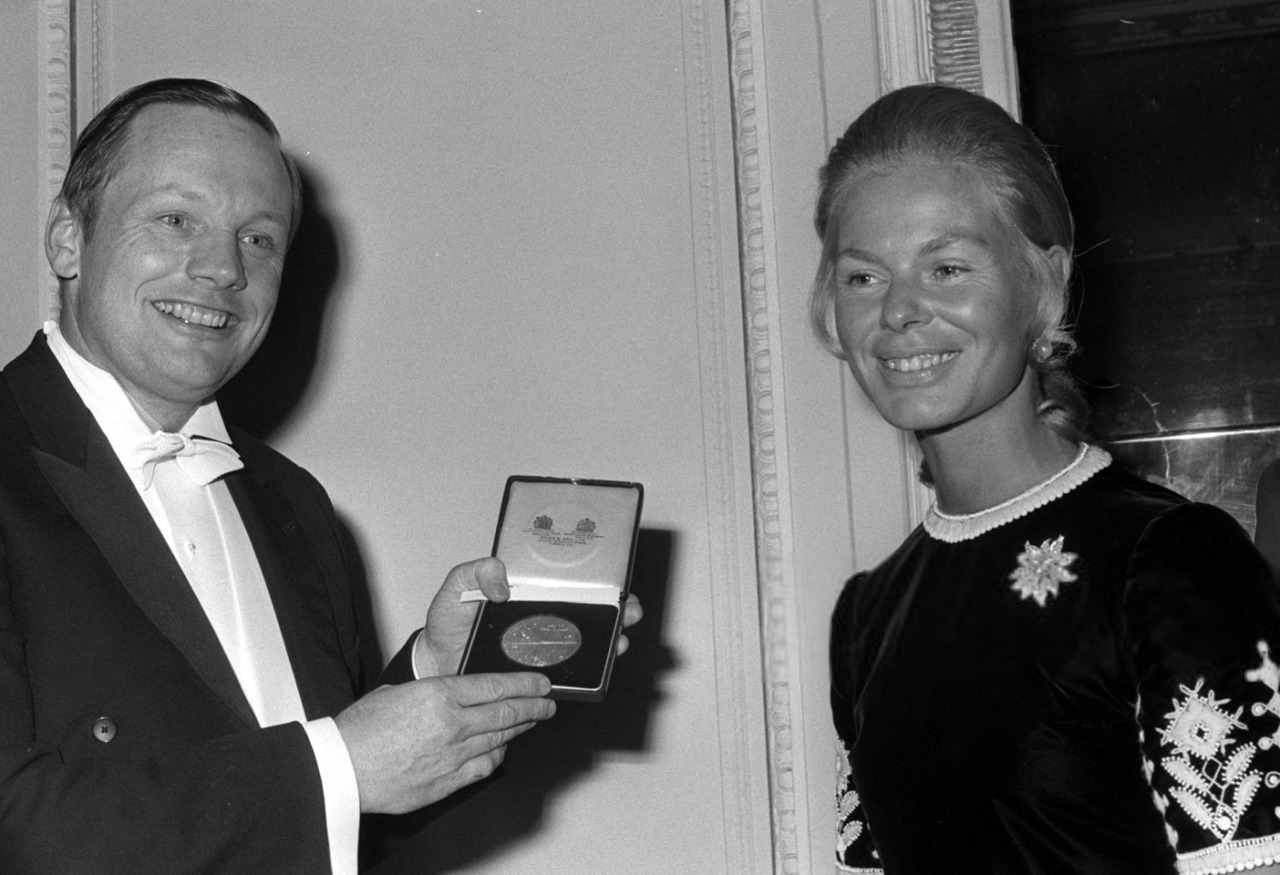 The Duchess of Kent notably wore the modern Diamond Flower Brooch to  present the Royal Geographical Society Gold Medal to astronaut Mr Neil Armstrong in 1970 and also on her hat for a Service at St Pauls’ Cathedral.