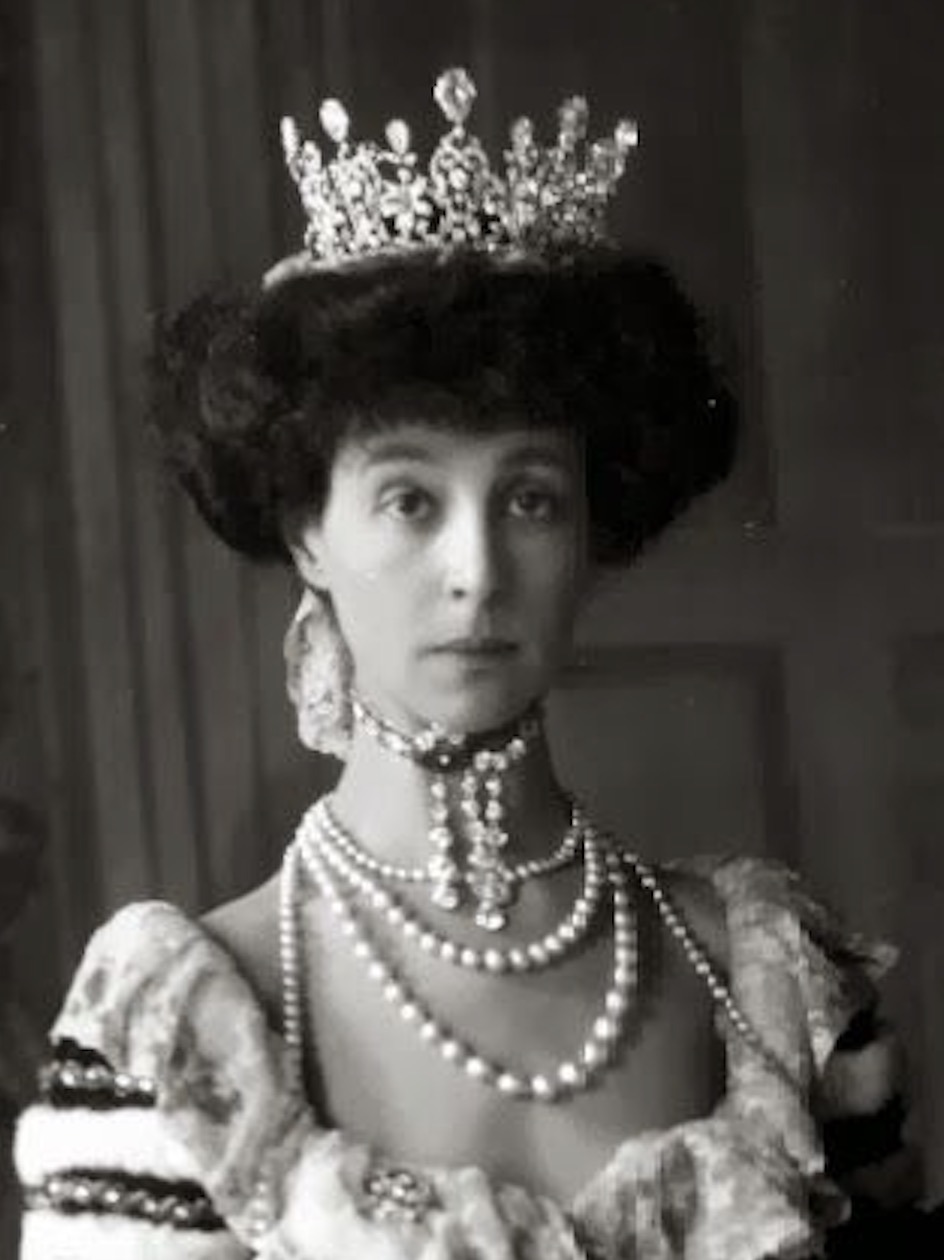 When Gladys Deacon married the Duke of Marlborough in 1921, the Duke’s former wife, the legendary Consuelo Vanderbilt, Duchess of Marlborough, had auctioned off her Boucheron Diamond Tiara while the Vanderbilt Boucheron Pearl Tiara had been given to her daughter-in-law, the Marchioness of Blandford, so the Duke acquired Empress Maria Feodorovna’s Pearl Drop Tiara for the new Duchess.