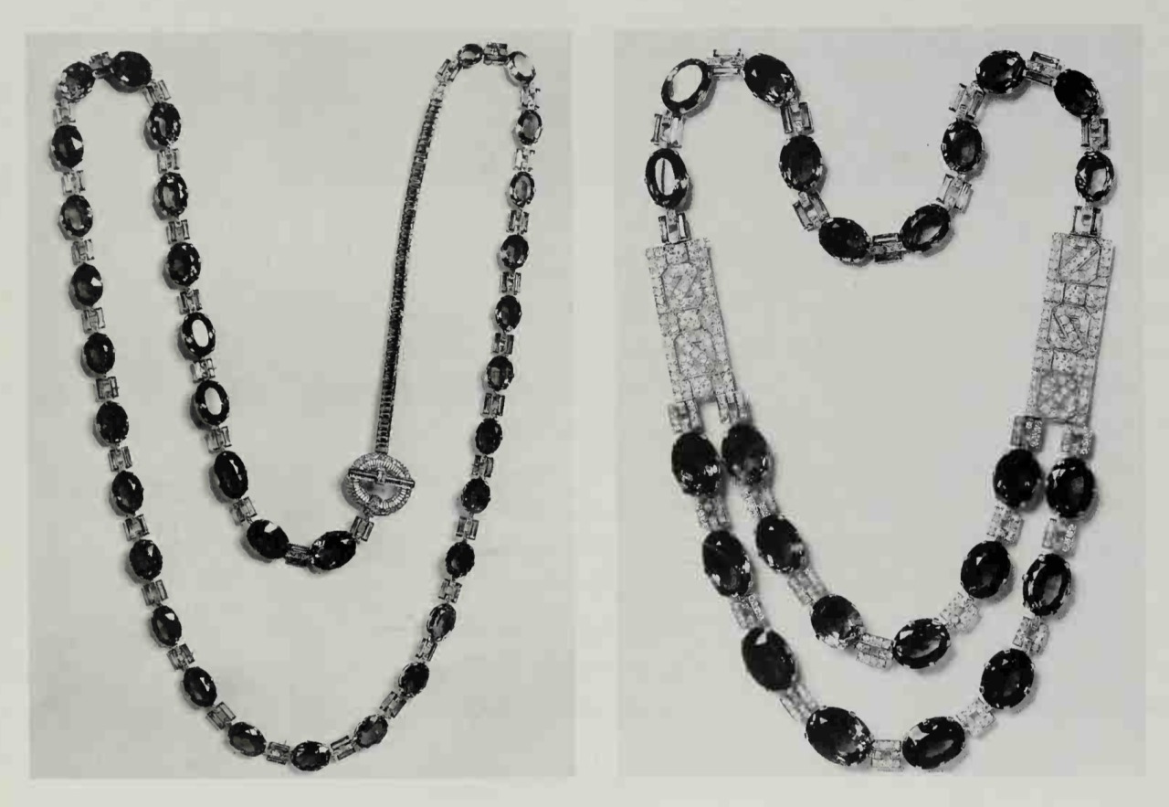 In 1928, Gladys had the sautoir altered yet again so it could be worn as a two row necklace together with detachable diamond panels.