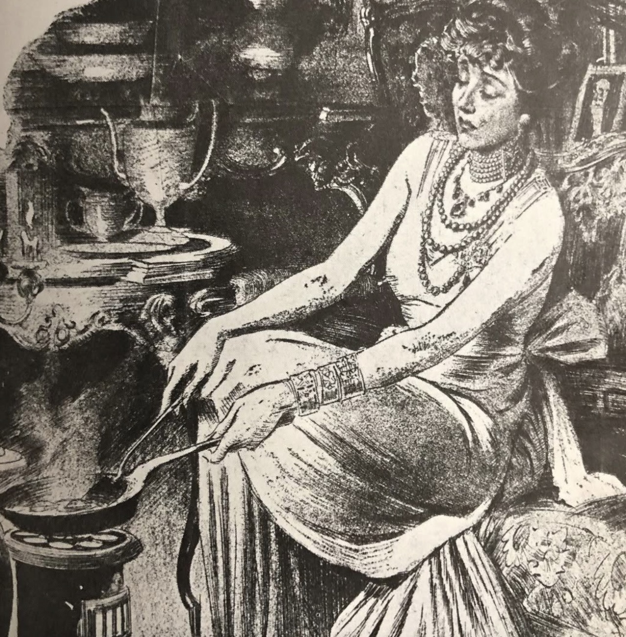 The following year, the Duchess of Marlborough was described wearing the Sautoir for a Ball given by Lady Fitzwilliam in Grosvenor Square during the London Season.