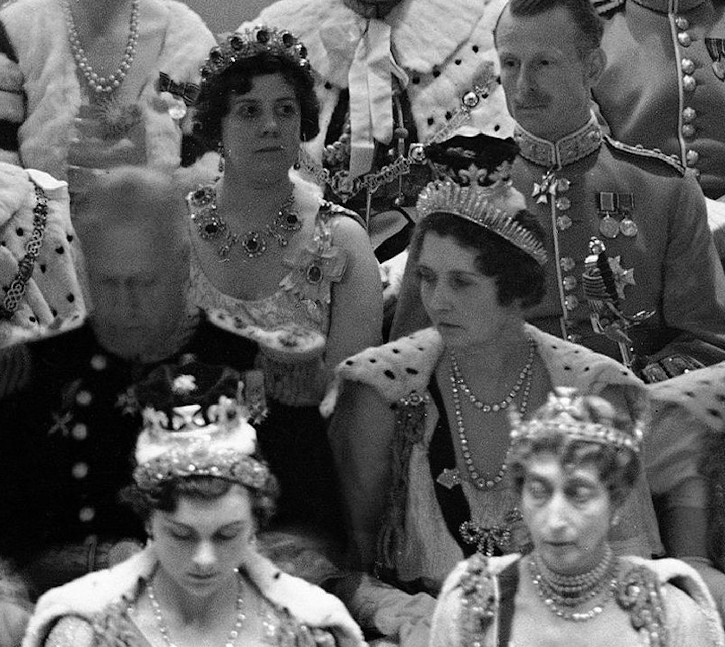 The Duchess of Fife seems to have loaned the Fife Fringe Tiara to her sister-in-law, Lady Patricia Ramsay, for the Coronation of King George VI in 1937. Judging by the shape of the elements, it appears it was the Fife Fringe, not the Connaught Fringe, which belonged to her late mother.