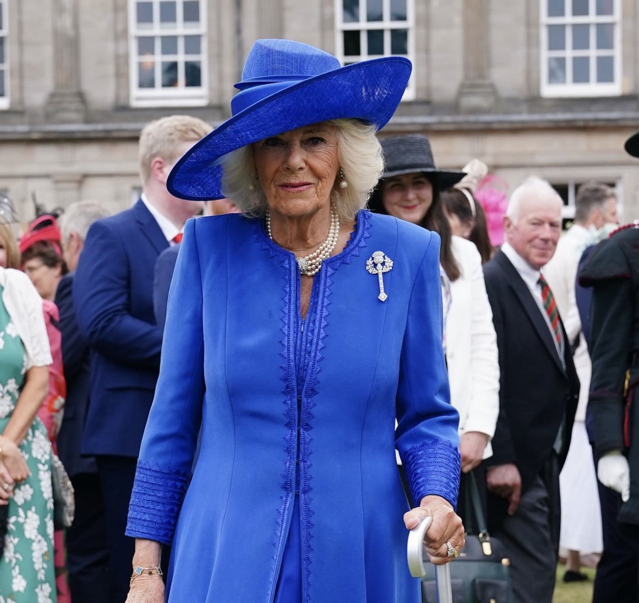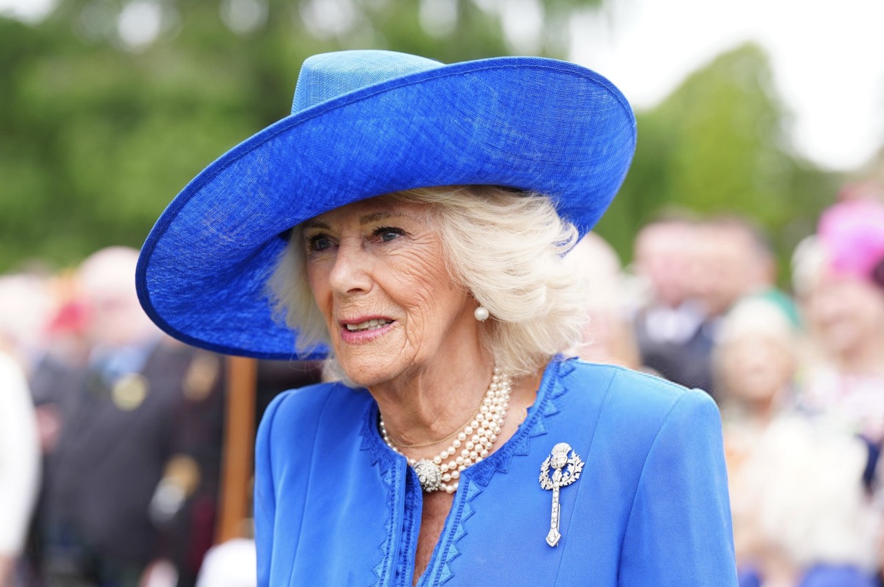 Queen Camilla was wearing Queen Mary’s Diamond Thistle Brooch for the Garden Party