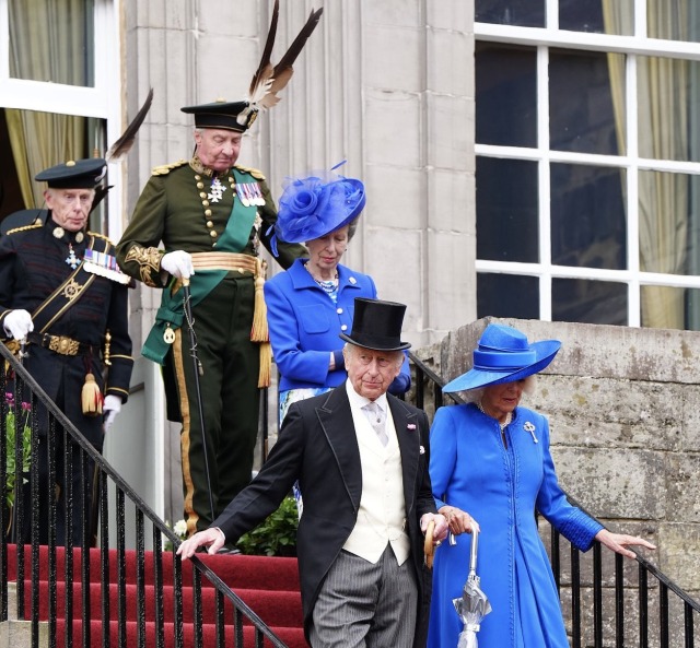 The Princess Royal, as well as the Duke of Buccleuch and Queensberry, joined King Charles III and Queen Camilla at the Garden Party for 8,000 guests in the grounds of the Palace of Holyroodhouse in Edinburgh, during the annual Holyrood Week. The members of the royal family stood for the national anthem before meeting the guests.