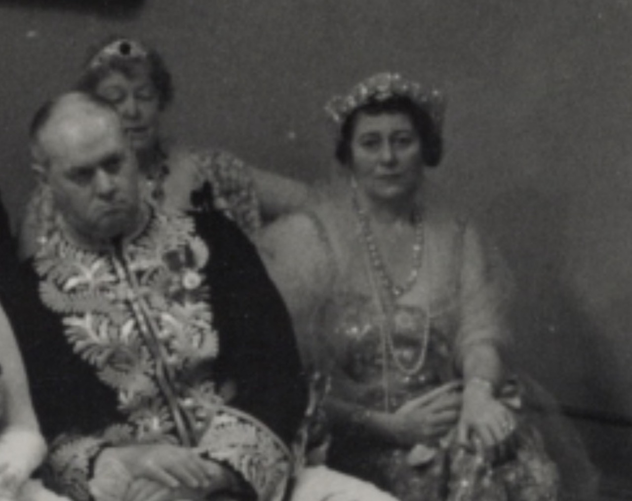 Dame Margaret Greville seems to have worn both Emerald Necklaces with the Greville Emerald Tiara and Emerald Earrings for a Concert at the Austrian Embassy in London in 1937, during the Coronation Festvities for King George VI.