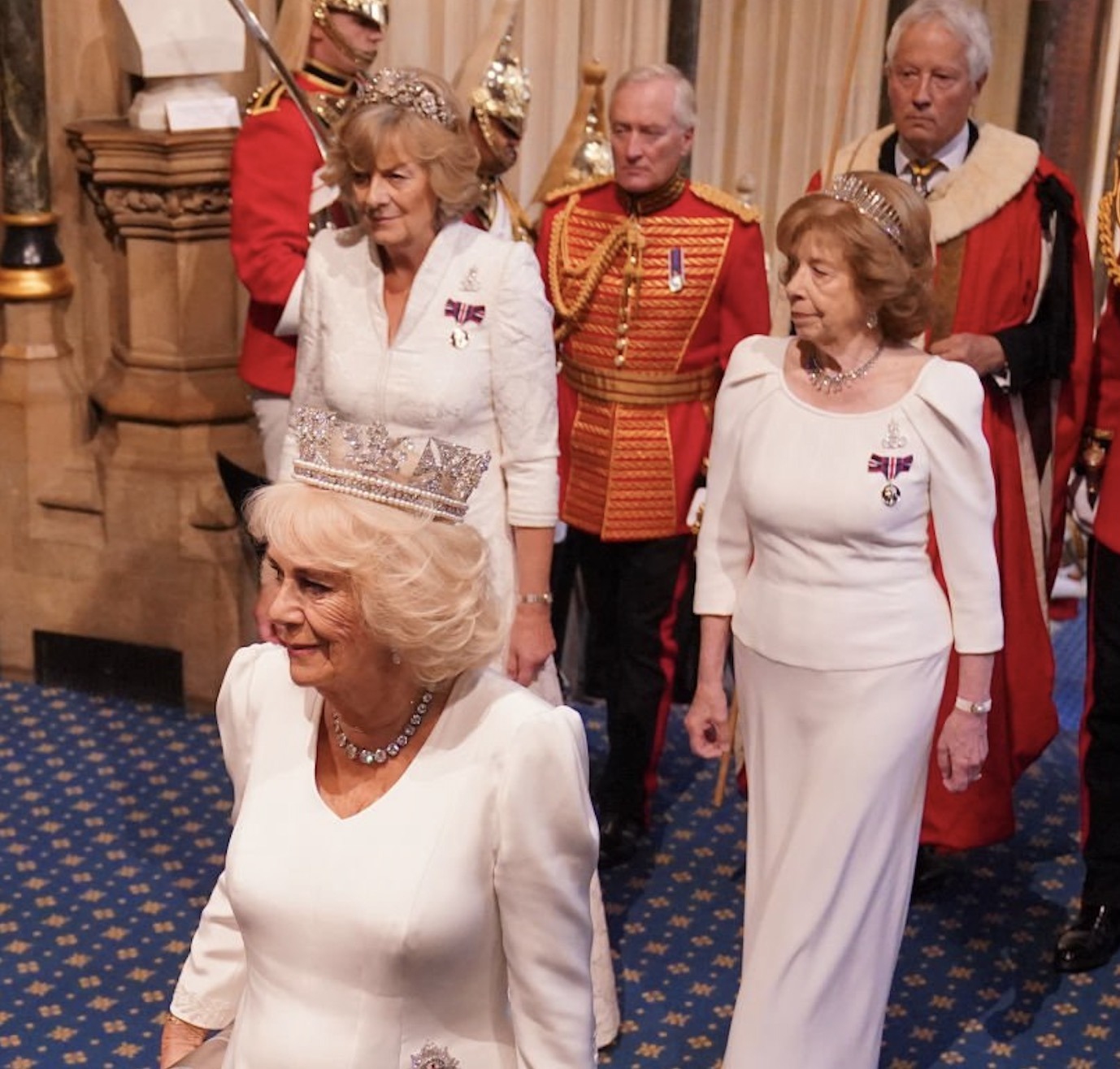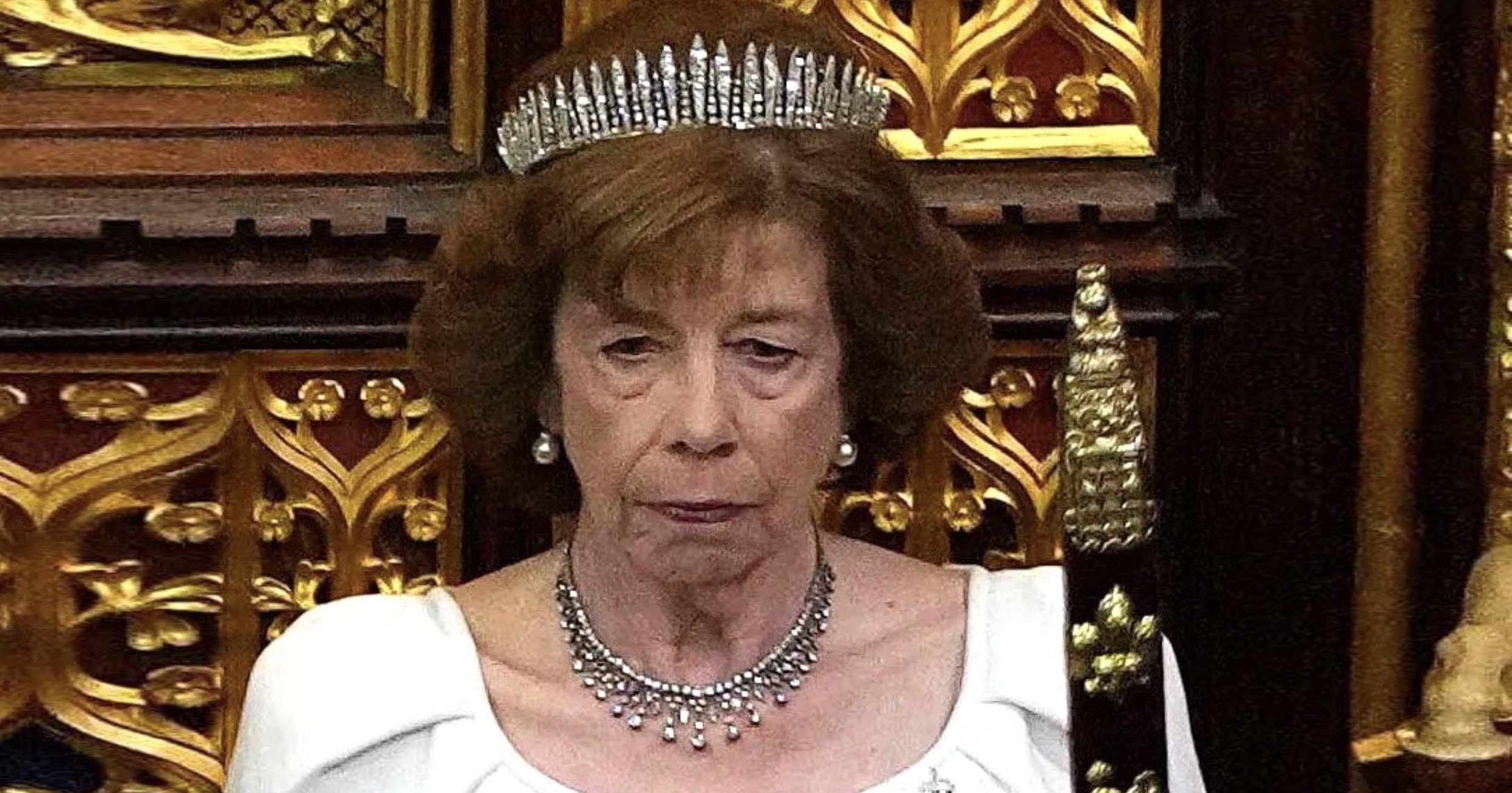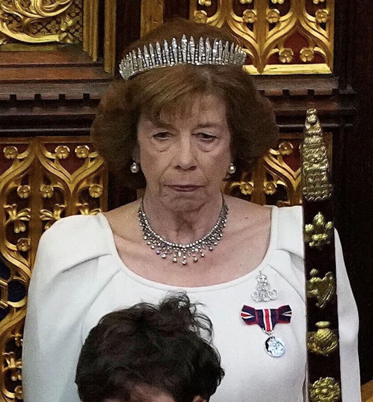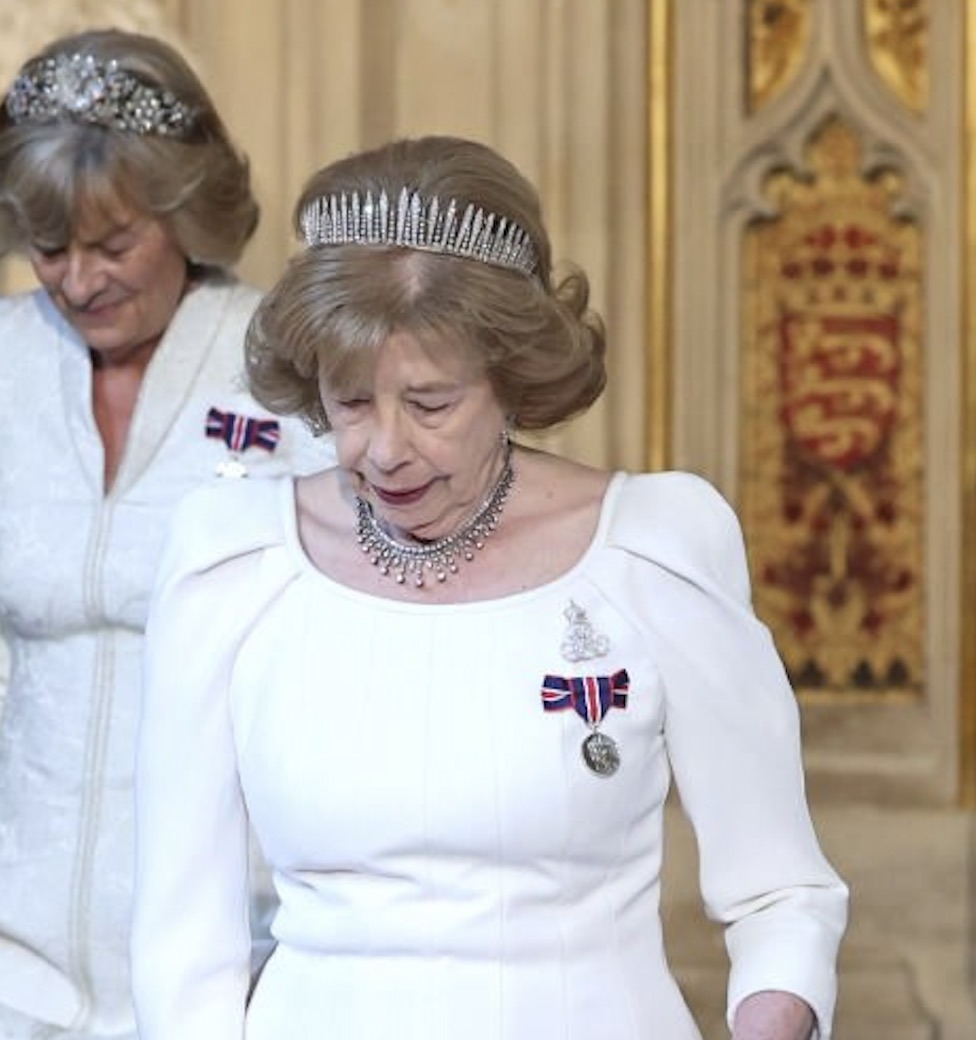 Last year, the Diamond Fringe Tiara was again worn by Lady Sarah for last year’s State Opening of Parliament in the Chamber of the House of Lords at the Palace of Westminster, paired with a Victorian Diamond Fringe Necklace.