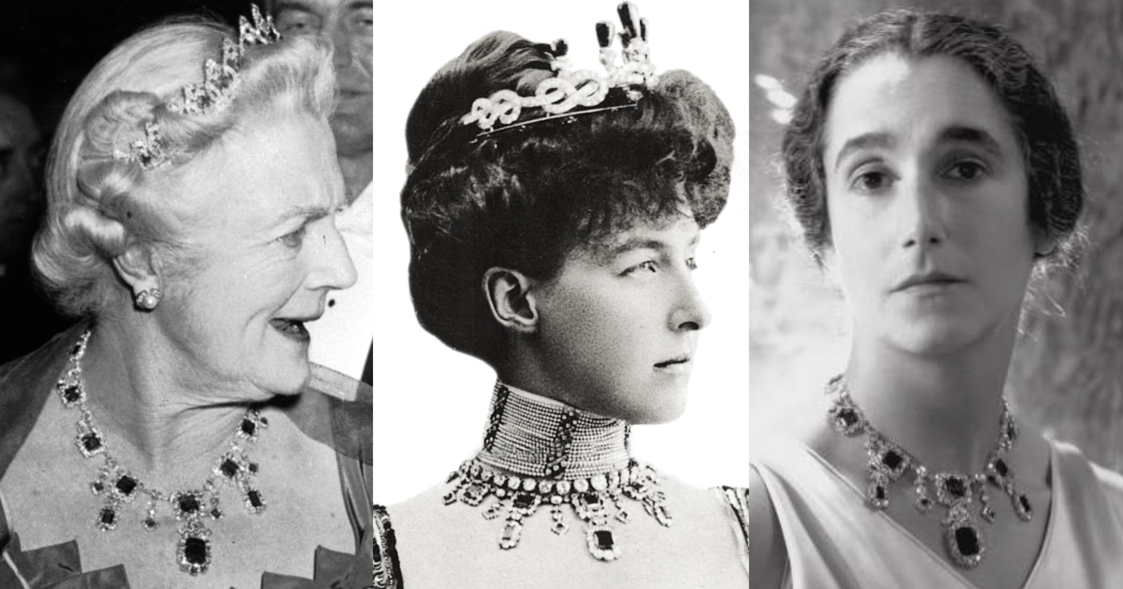 After Lady Cholmondeley’s death in 1989, the Emerald Necklace, and Tiara, were auctioned at Christie’s London on 20 June 1990, and went into a private collection until appearing at auction at Christie’s Geneva in 2015, when the necklace sold for CHF 2,629,000.