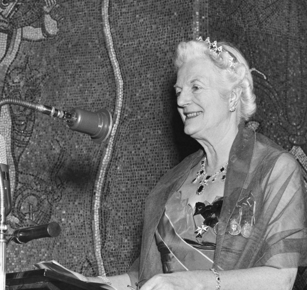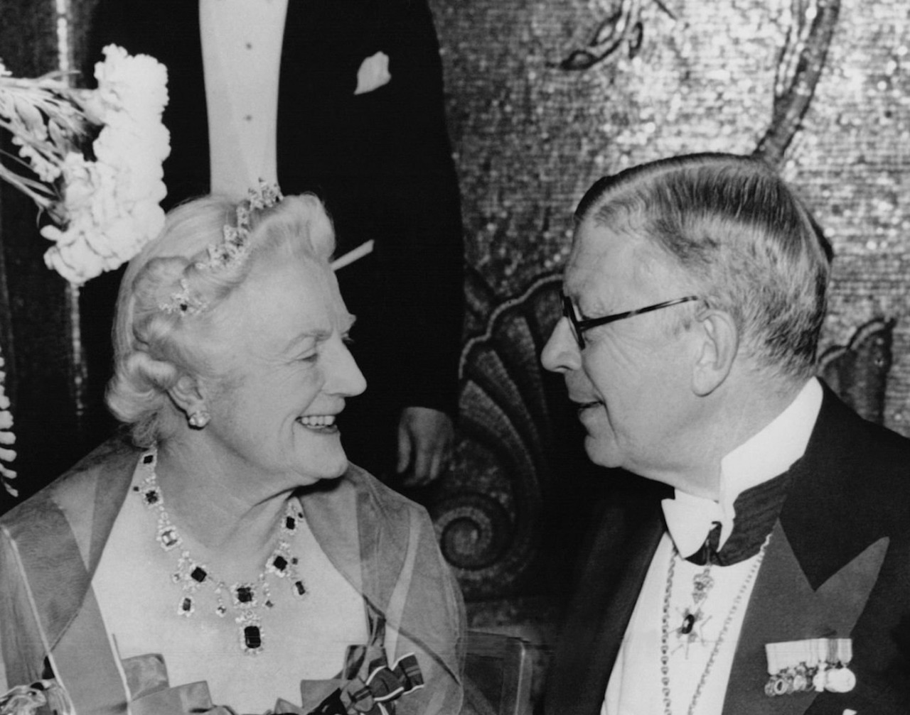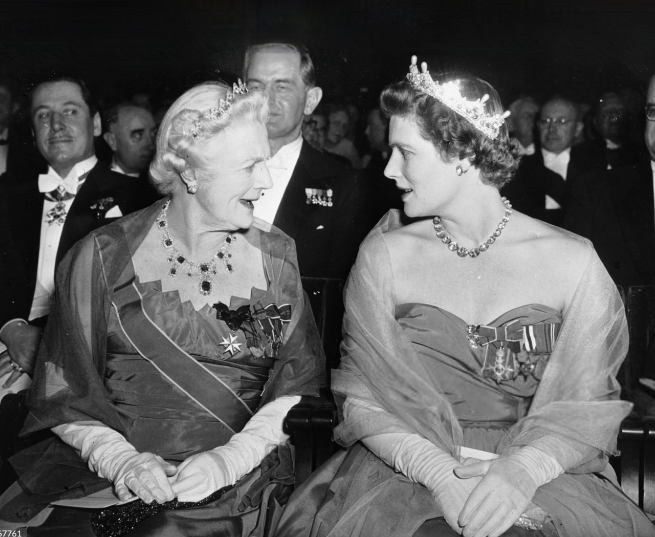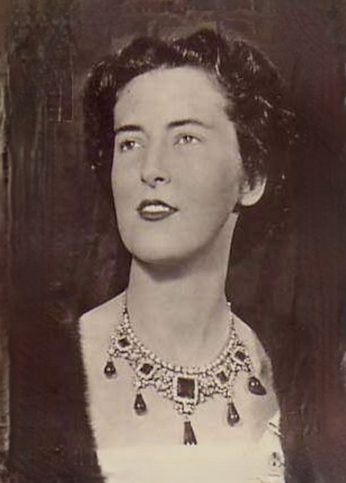 In 1953, the Marchioness of Cholmondeley loaned the Emerald Necklace and the accompanying Tiara to her friend, Lady Churchill, for the Nobel Prize Ceremony, when she wore the necklace to receive the Prize from King Gustaf VI Adolf of Sweden on behalf of Sir Winston.