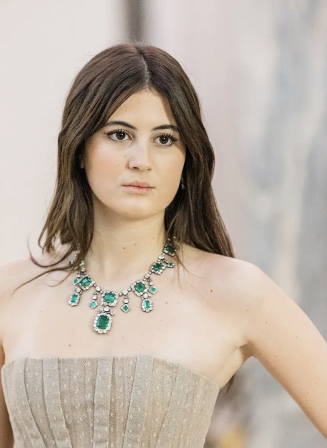 Sienna Gallienne wore the magnificent Orléans Emerald Necklace for Le Bal des Débutantes at the Shangri La Hotel in Paris in 2024.