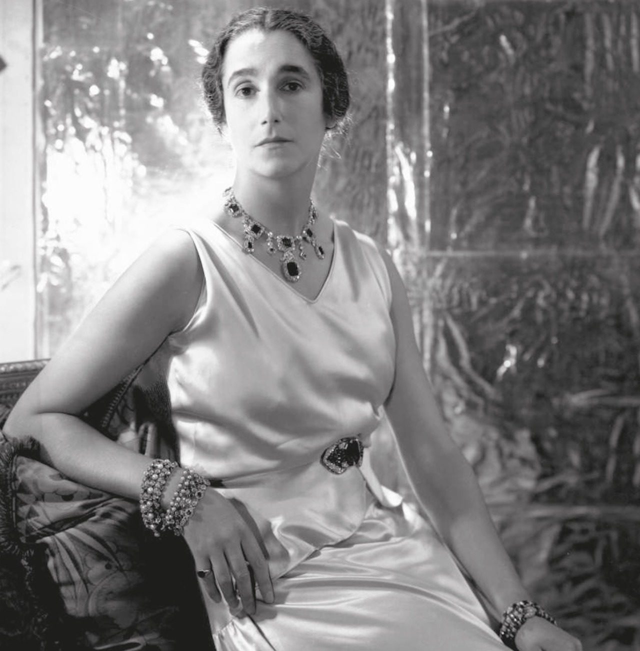 However, by some point in the early 1930s (as found by the wonderful Beth), the Duchess of Aosta’s Emerald Tiara and Necklace was acquired  by Sybil Sassoon, Marchioness of Cholmondeley, and worn for a series of stunning portraits as early as 1930, along with a Cartier Buckle BroochLady Cholmondeley’s collection also included a Sapphire Tiara and Necklace from the French Crown Jewels.