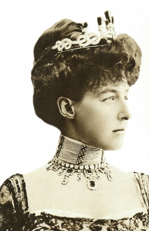 The Duchess of Aosta was notably pictured in the emerald necklace for a portrait in which she also affixed cabochon emeralds from her other Emerald Necklace on the top of her Savoy Knot and Star Tiara. Both of those pieces remain with Princess Hélène’s grandchildren.