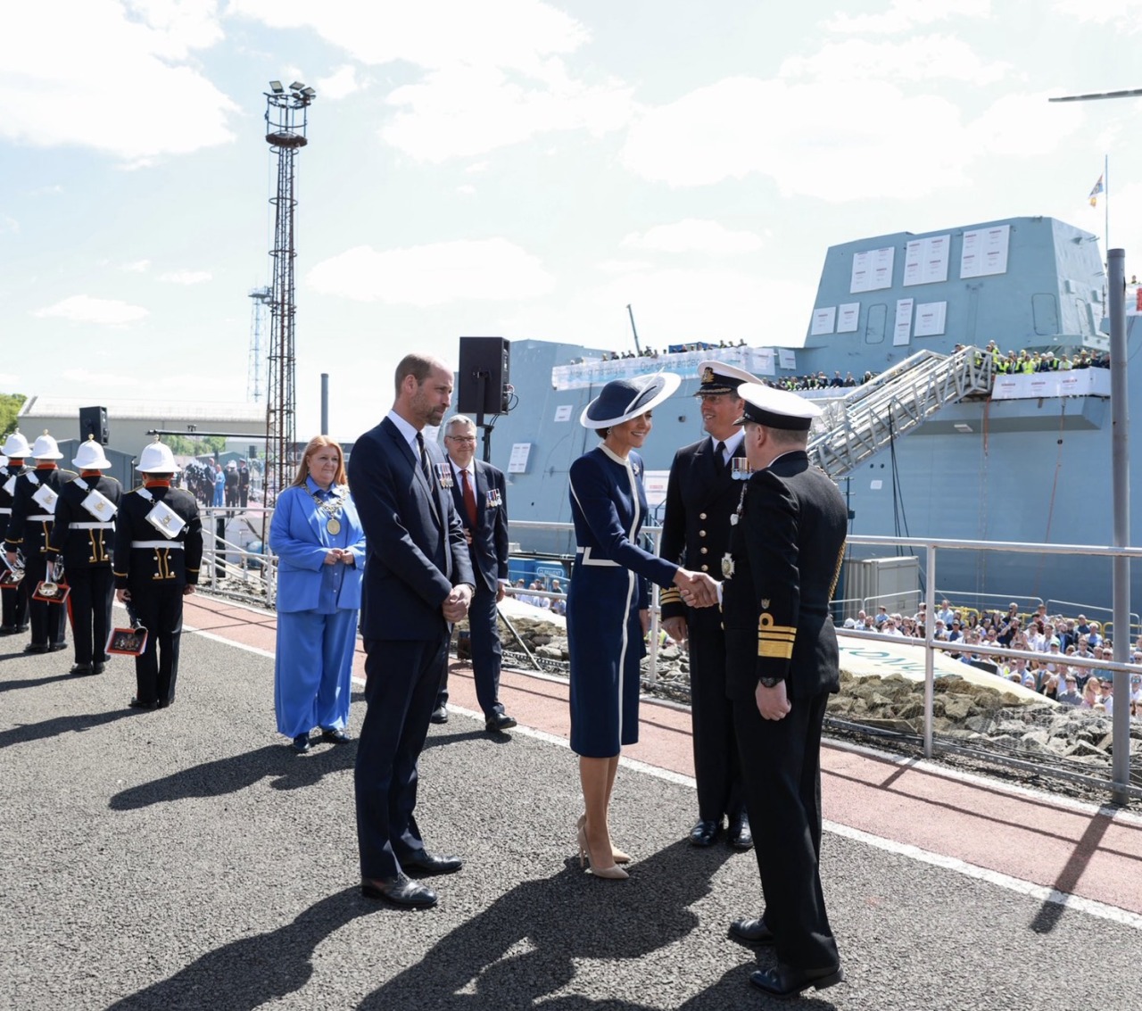 The Prince of Wales, Duke of Rothesay in Scotland, joined the Princess of Wales, Sponsor of HMS Glasgow, for the ship’s naming ceremony at the BAE Systems’ shipyard in Scotstoun in Glasgow on May 22nd. The Princess was appointed as the Sponsor of HMS Glasgow, a state-of-the-art Type 26 anti-submarine frigate, designed to provide protection to the UK’s nuclear deterrent and aircraft carriers, in 2021.