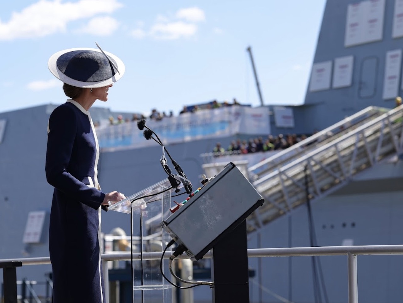 To cheers from hundreds of friends, family, workers, VIP guests and the 45-strong ship’s company at BAE Systems shipbuilding facility in Scotstoun, The Duchess of Rothesay, as she is known in Scotland, declared the time-honoured words: “I name this ship Glasgow. May God bless her and all who serve in her.”