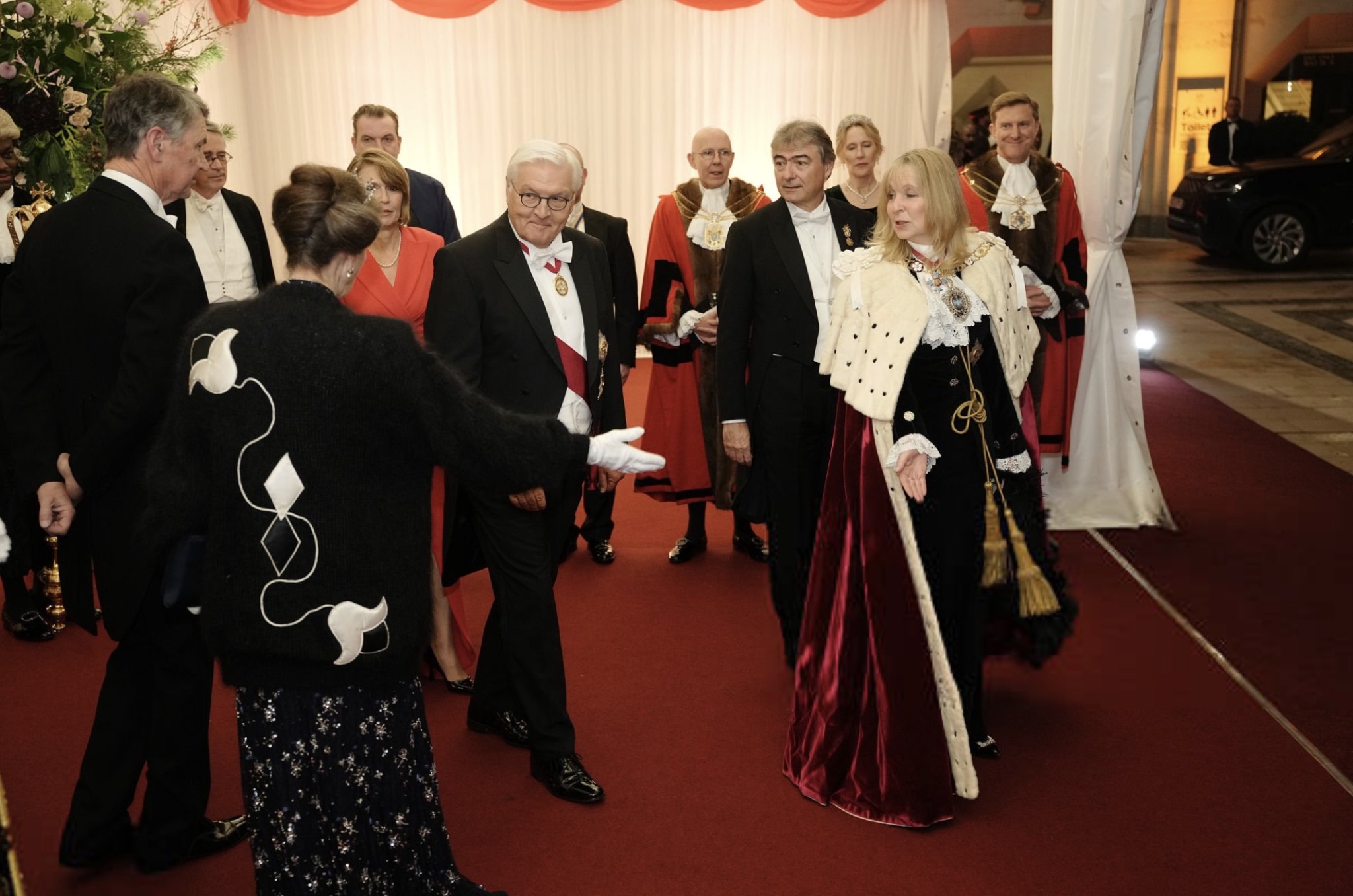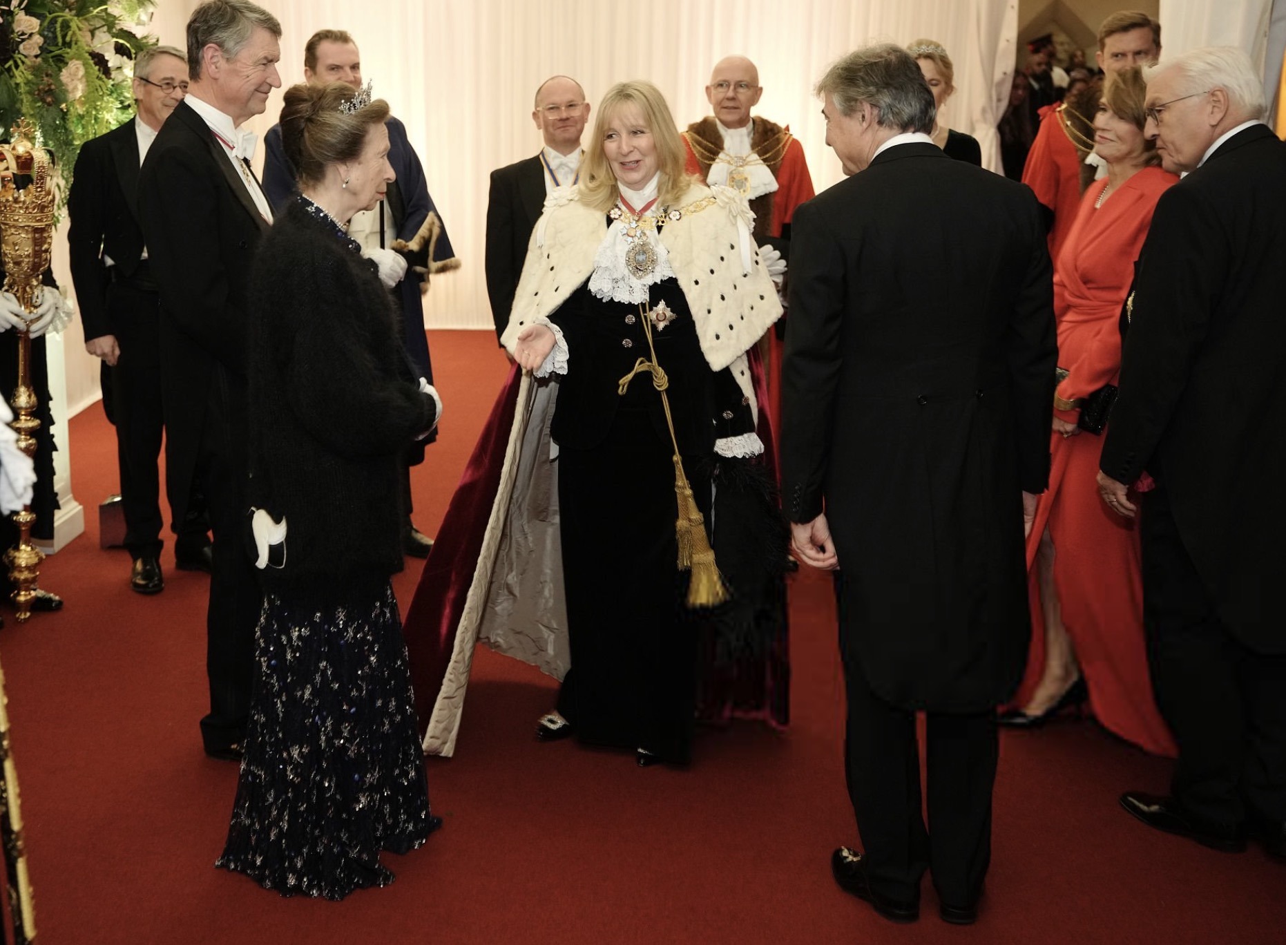The Princess Royal and Sir Timothy Laurence join German President Frank-Walter Steinmeier and First Lady Elke Büdenbender at the Banquet hosted by the Lord Mayor and City of London at the Guildhall in London on the evening of December 4th, on the second day of the German State Visit to Britain.