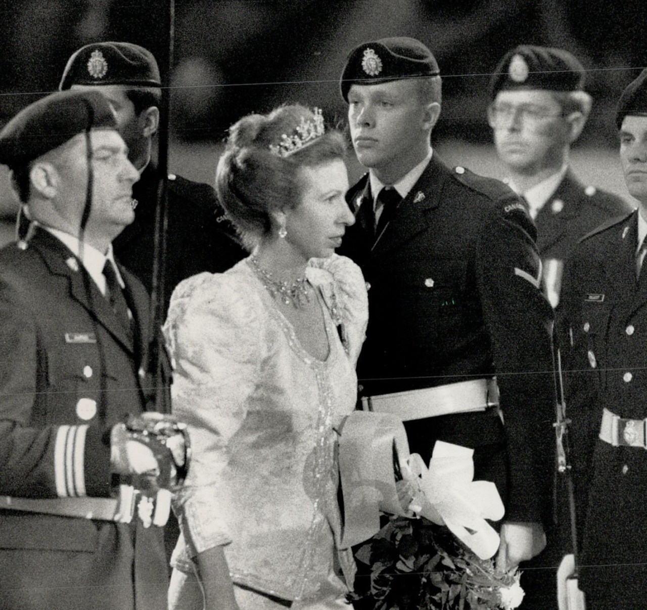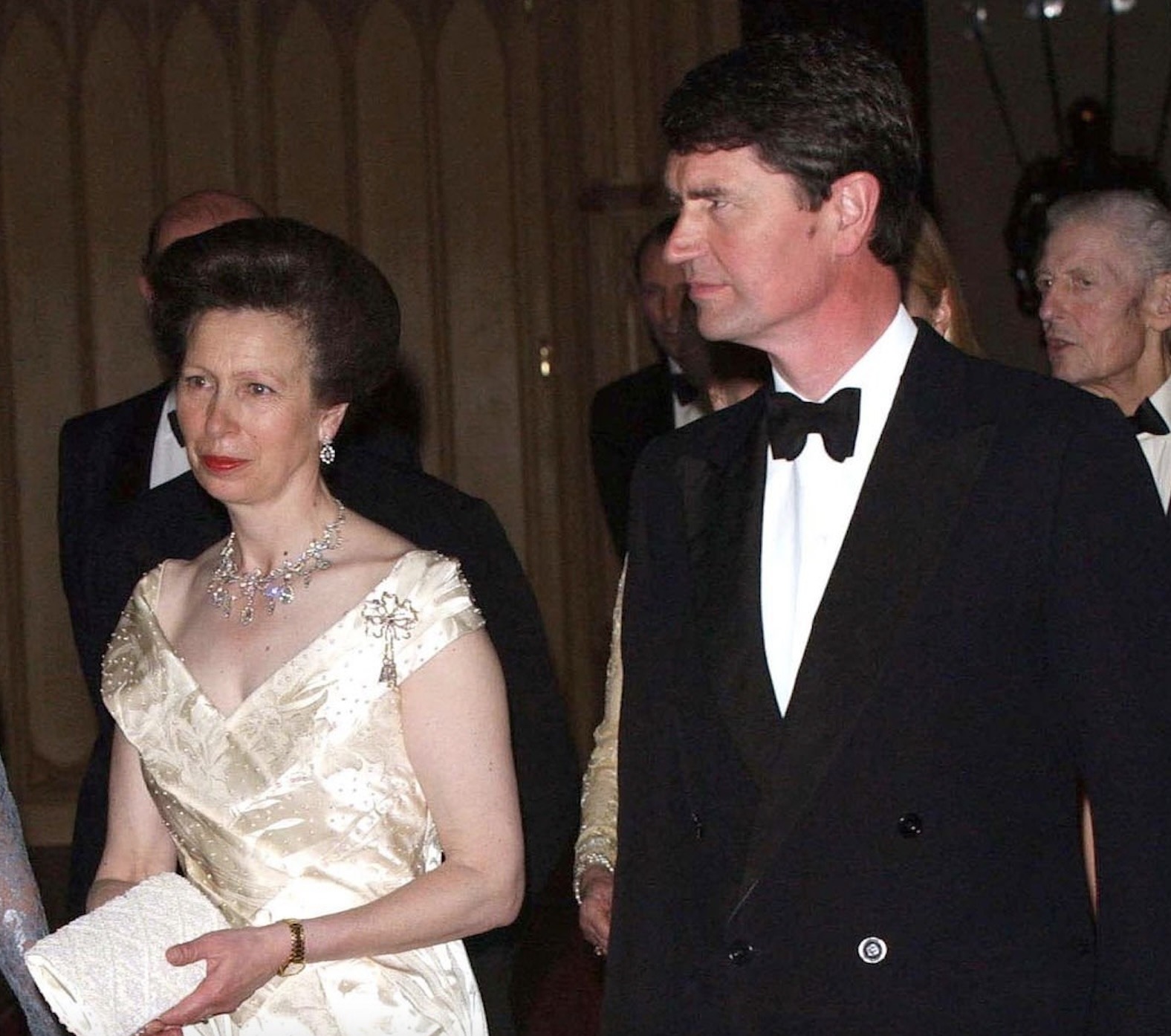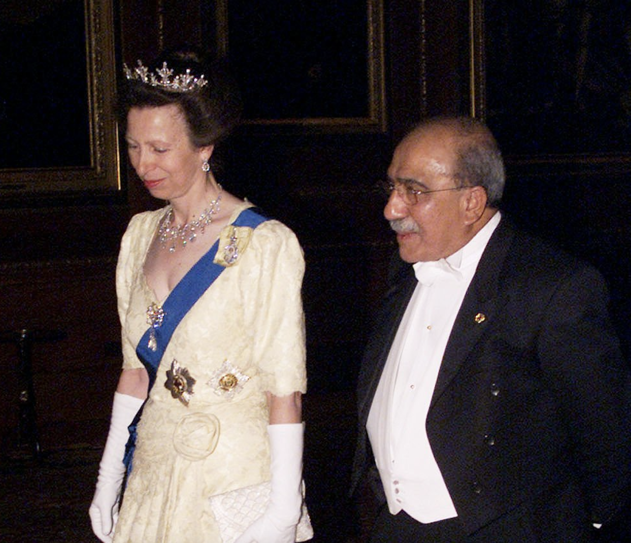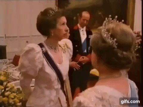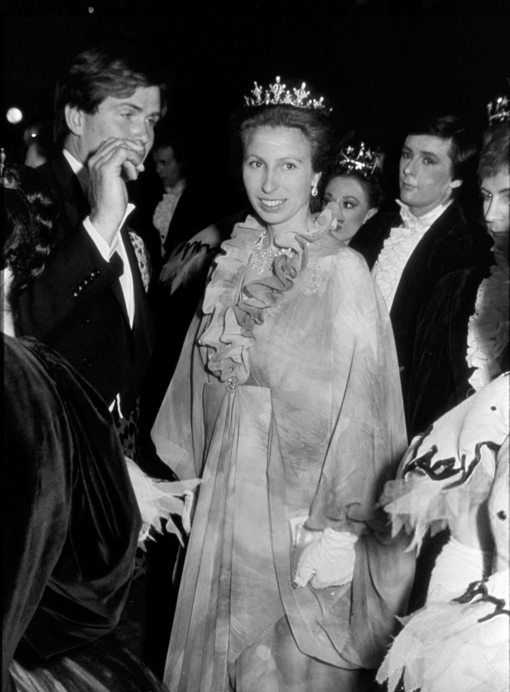 Princess Anne notably wore the Diamond Festoon Necklace with the Festoon Tiara and a Diamond Bow Brooch she received as a Wedding Gift from her brother, for a Banquet during the Swedish State Visit to Britain in 1975, and for the Queen’s Silver Jubilee Gala at Covent Garden in 1977 as well as the Oman State Visit to Britain, the Dutch State Visit to Britain in 1982 and during the Spanish State Visit to Britain in 1986.