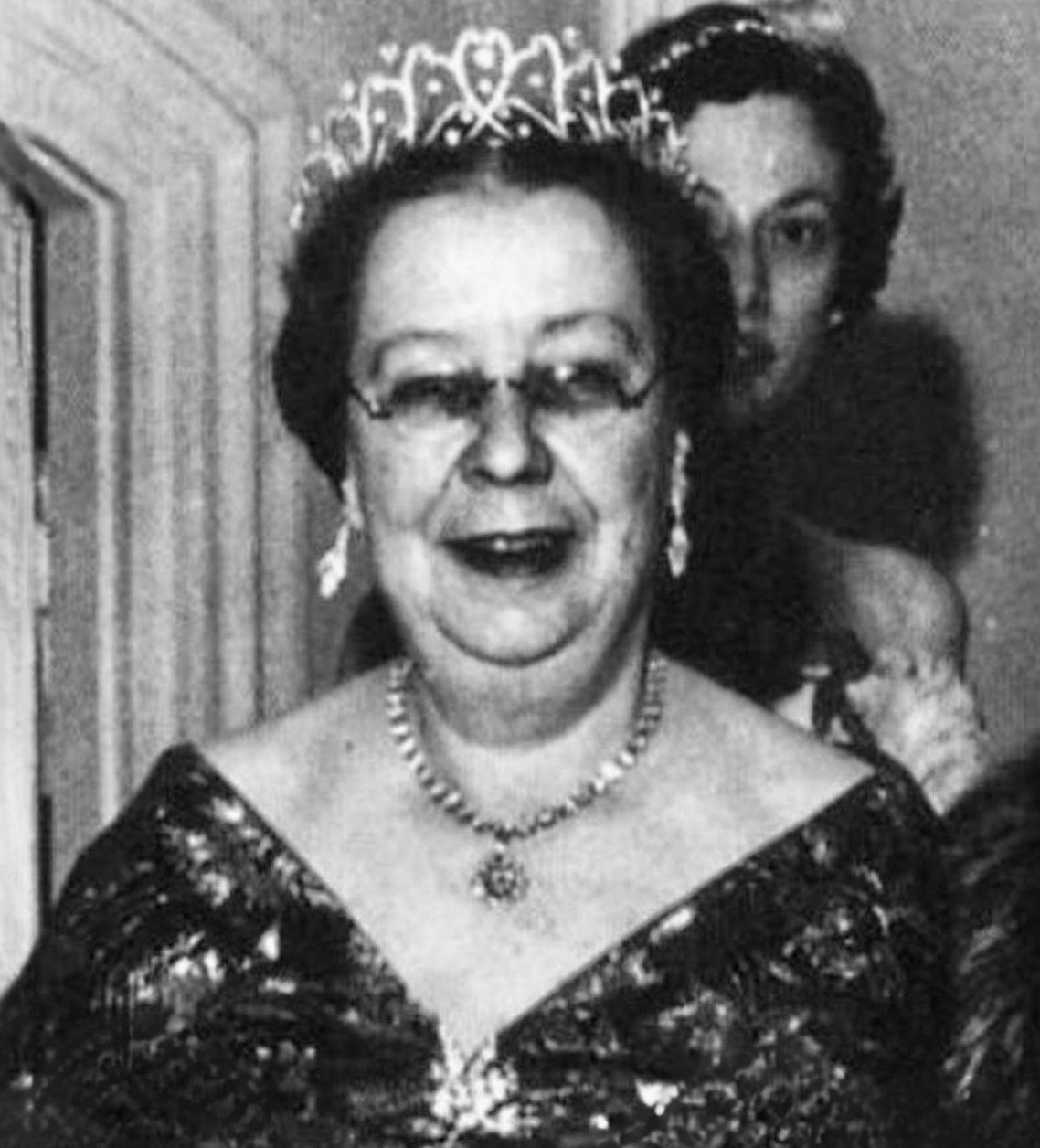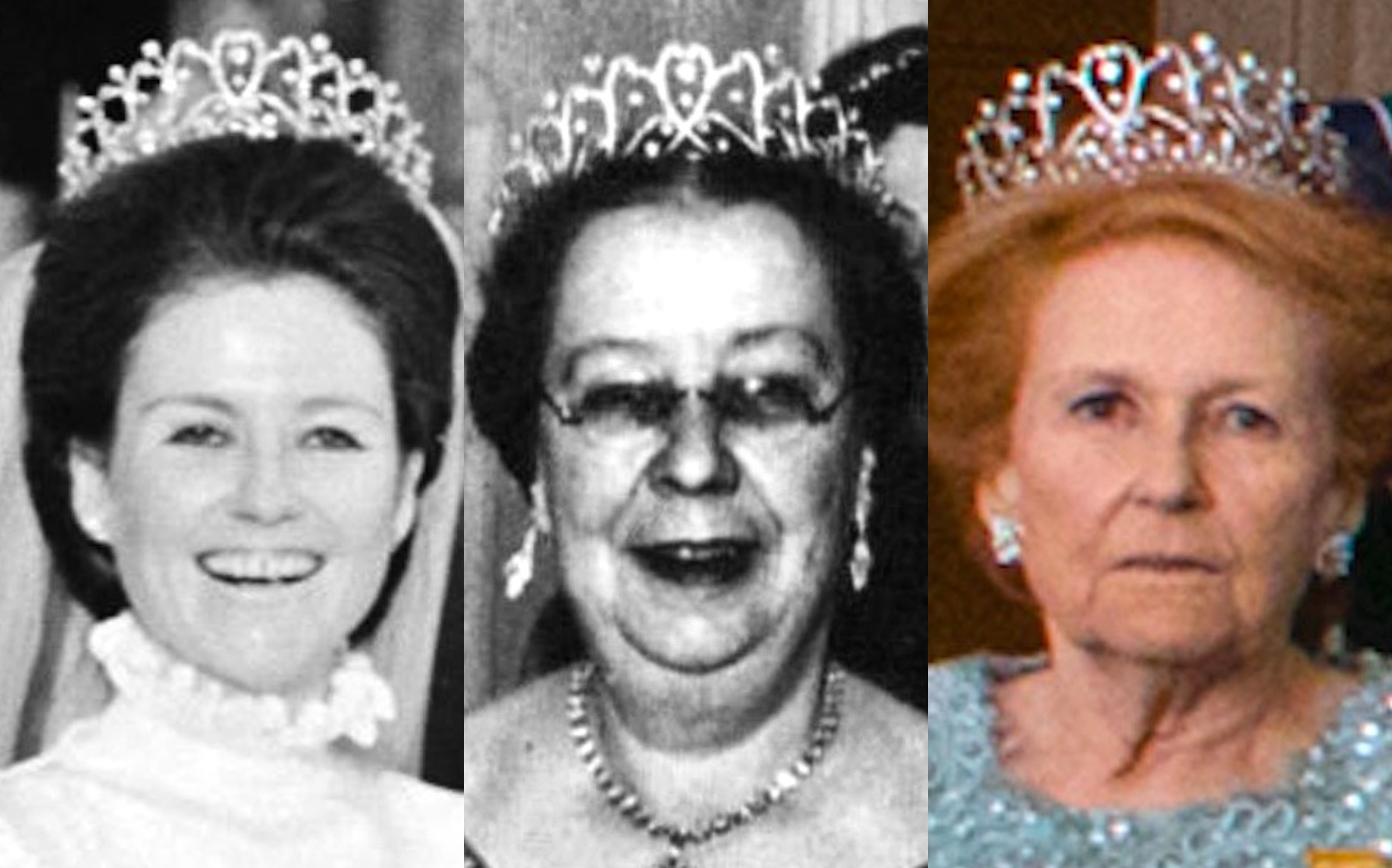 Due to her massive jewellery collection, Princess Viggo was only pictured wearing the Diamond Scroll Tiara on a handful of occasions during the 1950s and the 1960s, including the Wedding Ball of King Constantine II of Greece and Princess Anne Marie of Denmark at the Royal Palace of Athens in 1964.