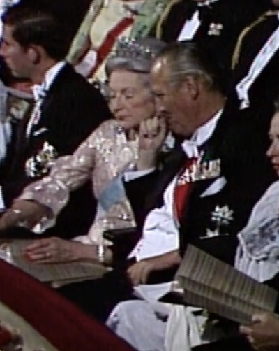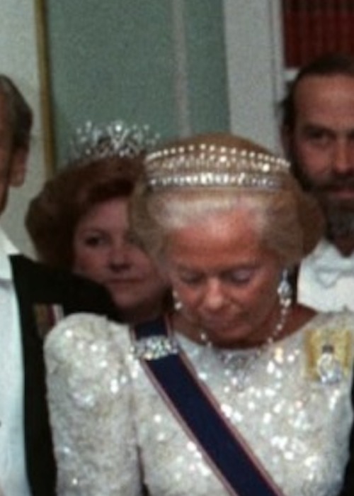 Over a decade later, Princess Viggo’s Diamond Scroll Tiara was worn by Lady Elizabeth for the Return Banquet hosted by King Olav for the British Royal Family at the end of the Norwegian State Visit to Britain in 1988.