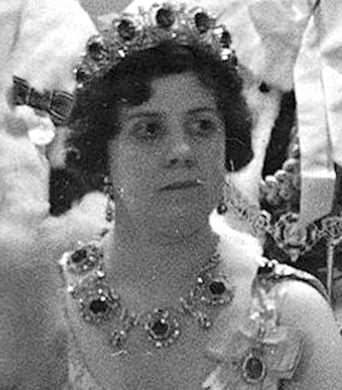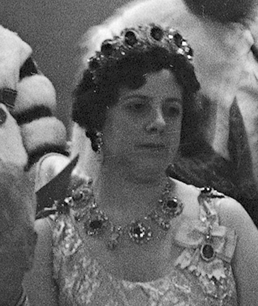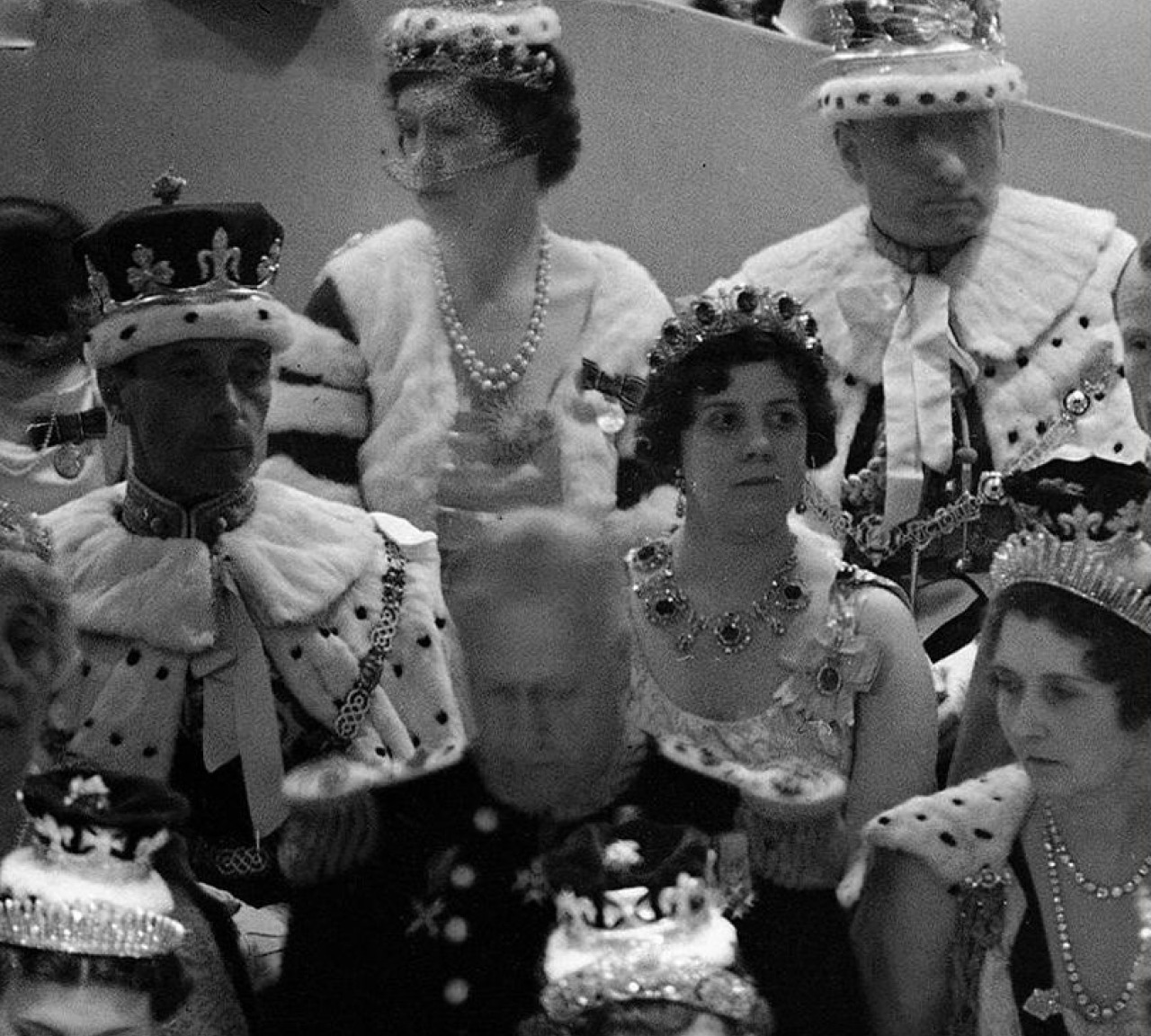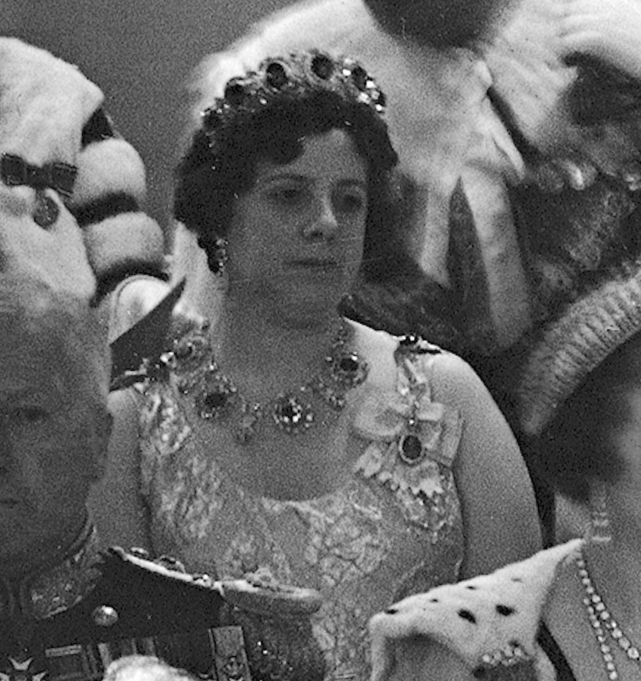 After Queen Alexandra’s death in 1925, and the Amethyst Tiara and accompanying Necklace, and the Sapphire Necklace, were inherited by the aforementioned Princess Louise, Duchess of Fife, who left them in 1931, to her younger daughter, Princess Maud, then Lady Maud Carnegie and later Countess of Southesk, who notably wore the Amethyst Tiara and Necklace for the Coronation of her cousin, King George VI in 1937.