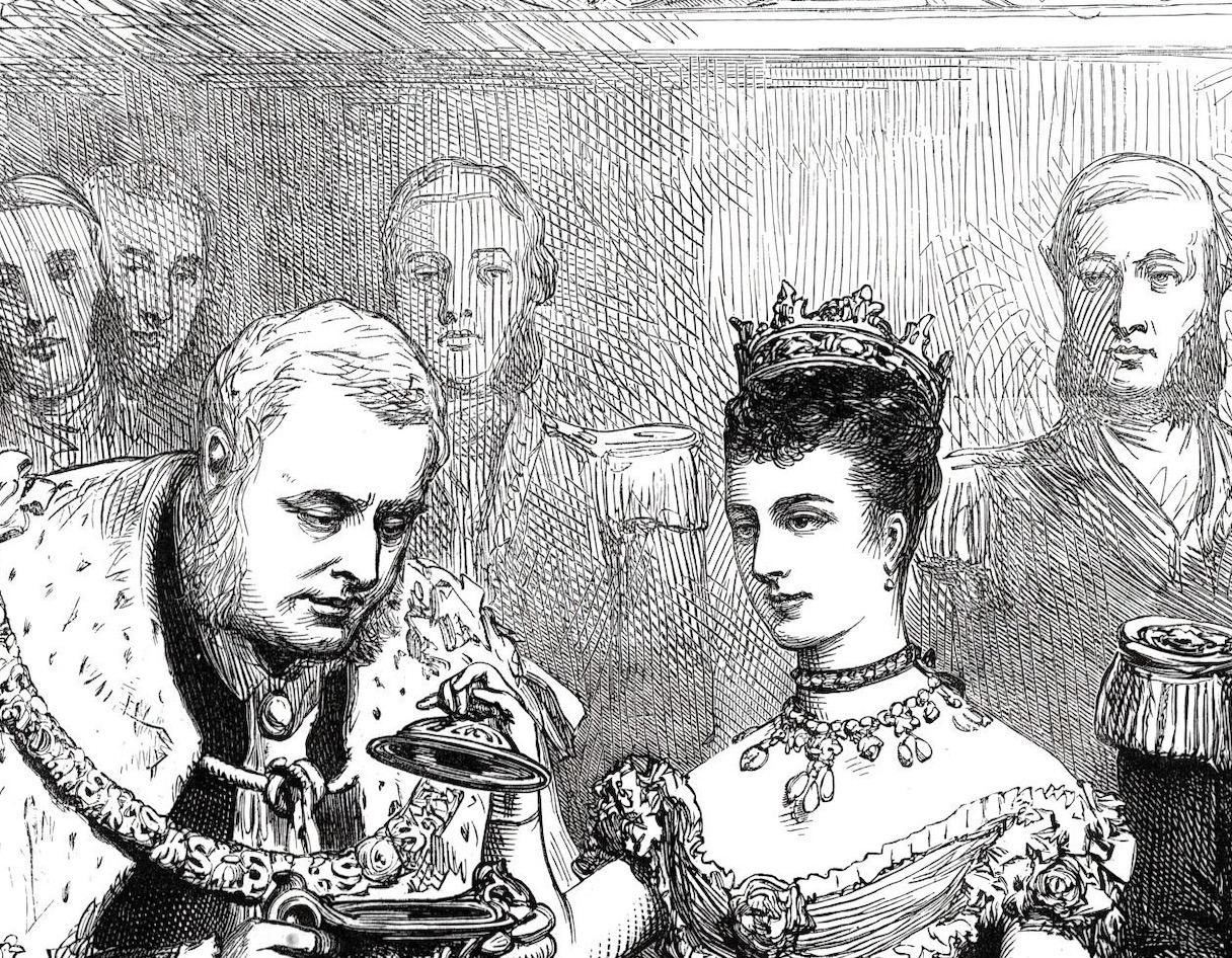 In 1874, the Princess of Wales wore her grand Diamond Tiara for the Wedding of her brother-in-law, Prince Alfred, Duke of Edinburgh, and Grand Duchess Maria Alexandrovna of Russia at the Winter Palace in St Petersburg, later wearing the Tiara for the Wedding Ball at the Winter Palace.